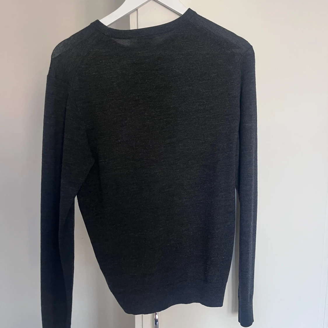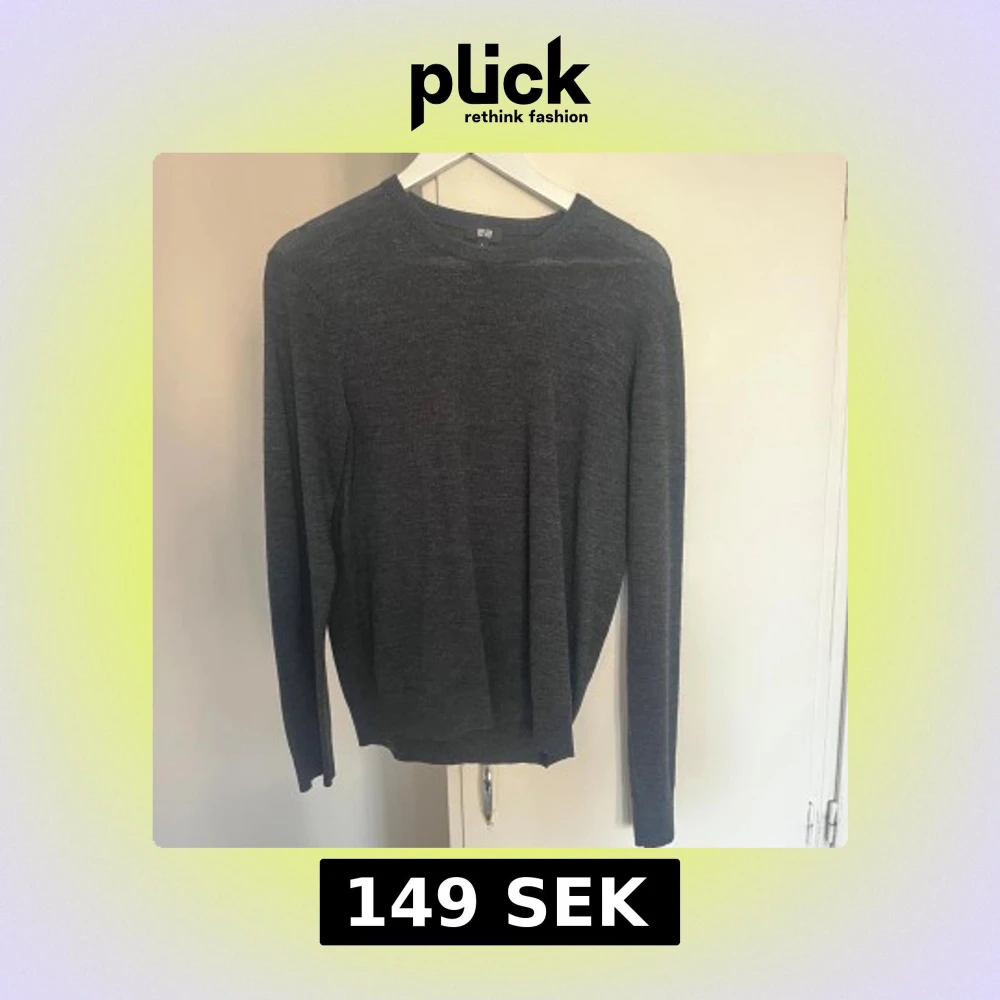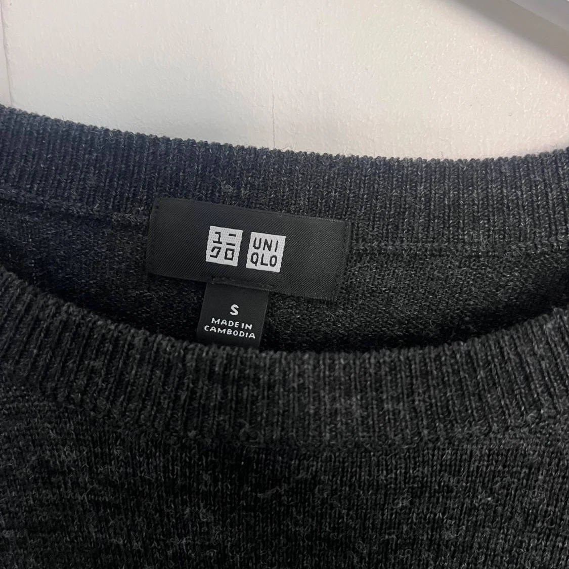 En stilren mörkgrå stickad tröja från Uniqlo i storlek S. Tröjan har rund halsringning och långa ärmar, perfekt för lager-på-lager. Enkel och clean design som funkar till allt. Materialet är mjukt och skönt, passar dig som gillar minimalistisk stil.