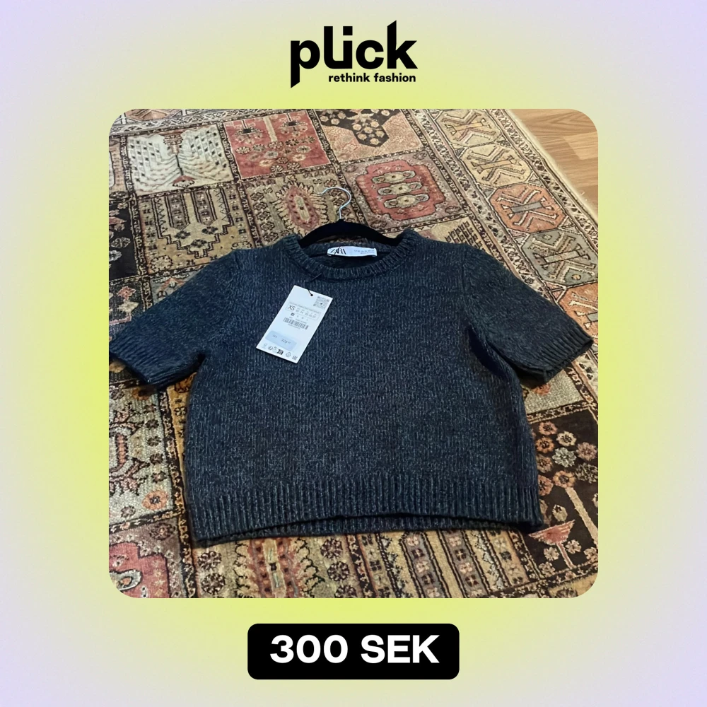Säljer en superfin mörkgrå stickad tröja från Zara i nytt skick. Den har korta ärmar och en ribbad kant vid ärmslut och nederkant. Perfekt för höst och vinter, och den är både mysig och stilren. Passar perfekt till allt och jag har bara haft på mig den en gång!