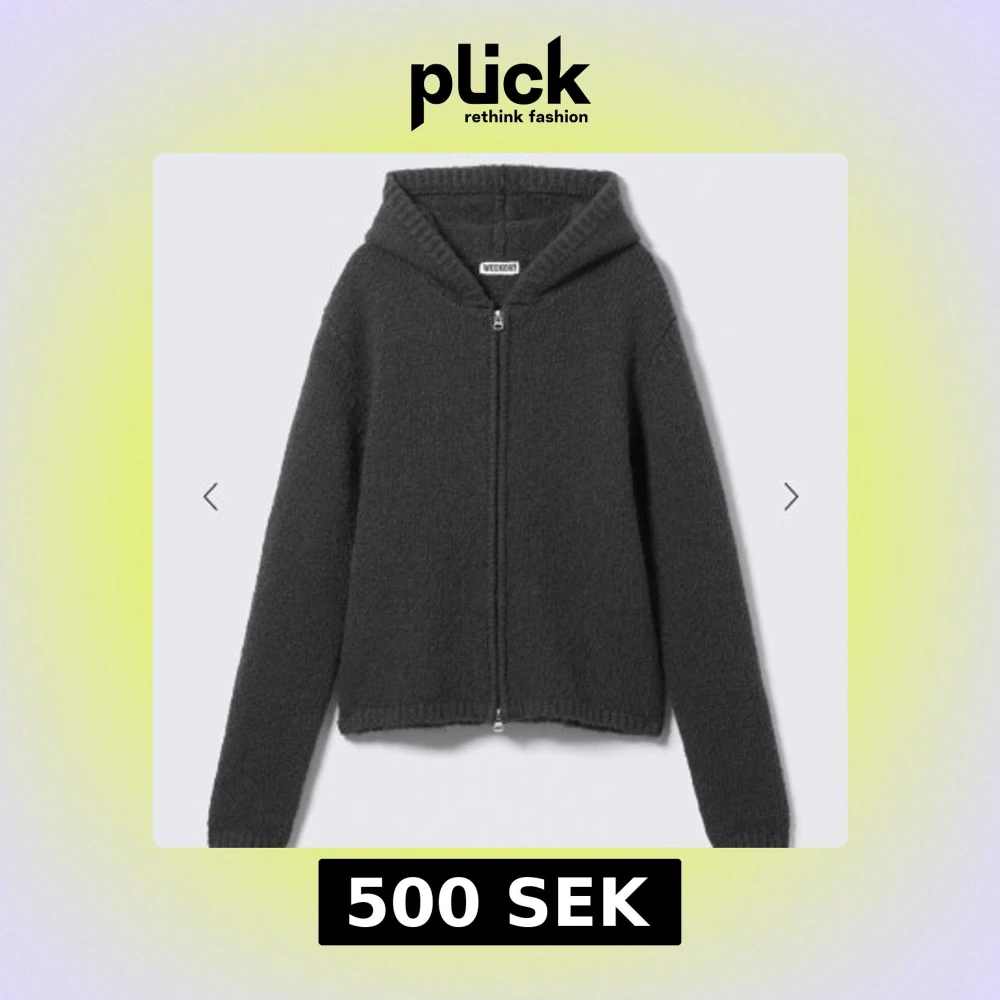 Mysig mörkgrå/blå stickad hoodie från Weekday med dragkedja hela vägen och huva. Tröjan har långa ärmar och är väldigt varm. Har använt själv som jacka några gånger nu på hösten och den värmer!