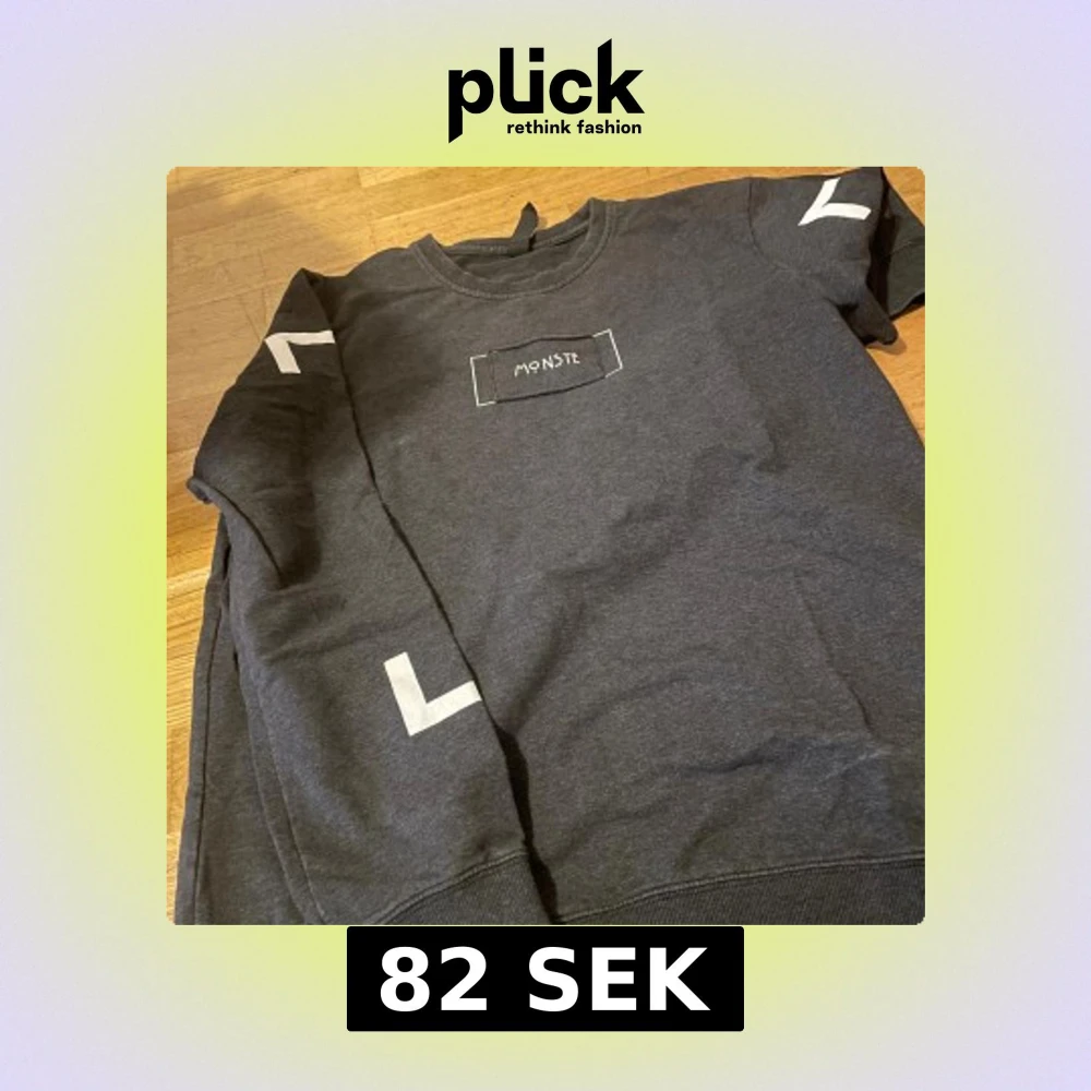 Säljer en mörkgrå sweatshirt från East Host i storlek XXL. Tröjan har vita grafiska detaljer på ärmarna och ett broderat MONSTE-tryck på bröstet. Klassisk rund halsringning och mjukt material som känns skönt mot huden.