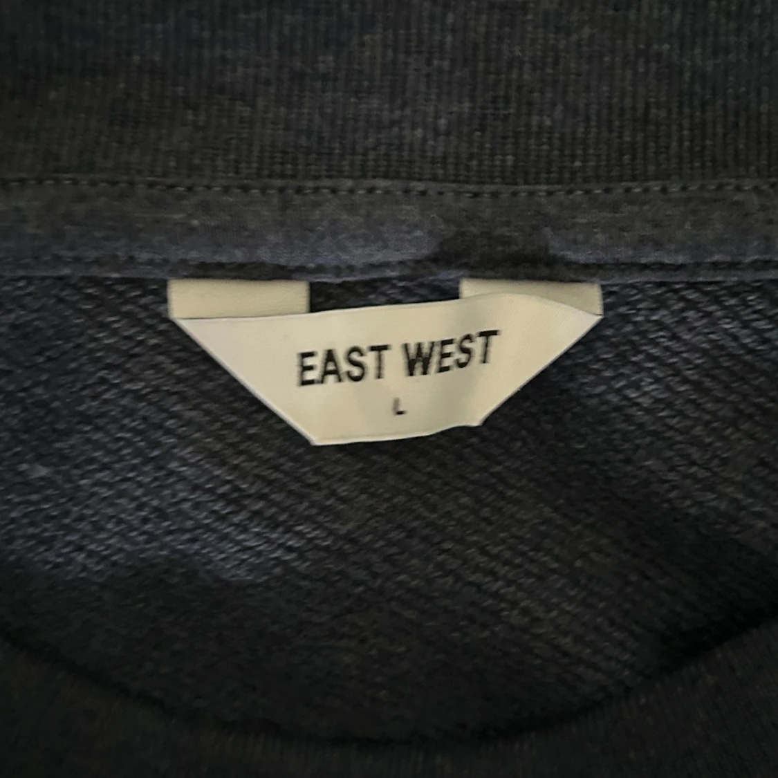 Säljer en stilren mörkgrå sweatshirt från East West. Tröjan har rund halsringning och långa ärmar, perfekt för en avslappnad och enkel look. Passar både till jeans och mjukisbyxor.