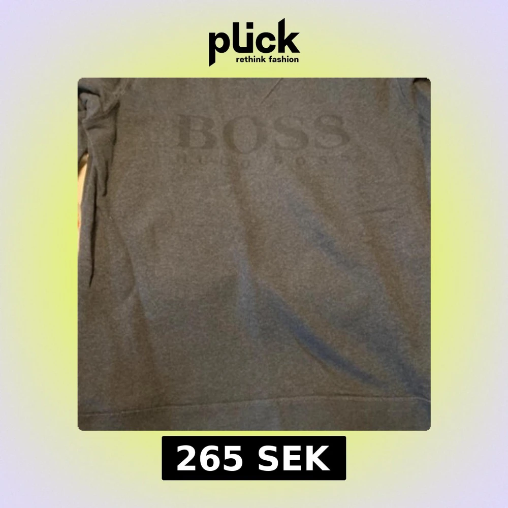 Säljer en mörkgrå sweatshirt från Hugo Boss med diskret BOSS-logga framtill. Tröjan har lång ärm och är i slim fit-modell, perfekt för en stilren och enkel look.