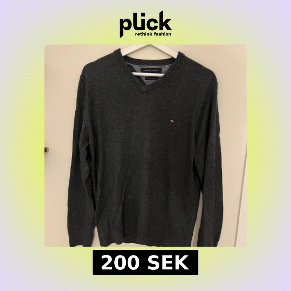 Mörkgrå v-ringad tröja från Tommy Hilfiger med liten broderad logga på bröstet. Tröjan är långärmad och har ribbade muddar vid ärmslut och nederkant. Perfekt för lager-på-lager och stilren look.