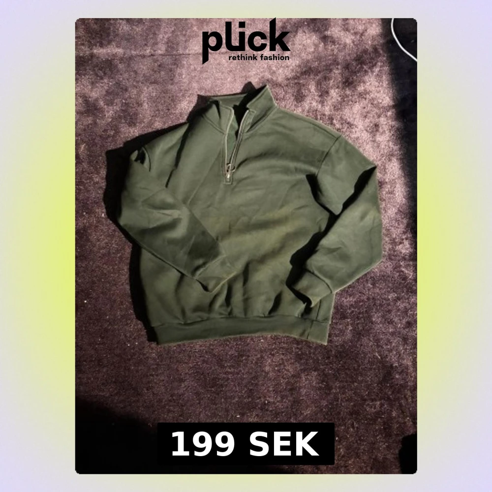 Mörkgrön sweatshirt med half zip och hög krage. Tröjan har en relaxed passform och är tillverkad i mjukt bomullsmaterial. Perfekt för lager-på-lager och chill dagar. Långa ärmar och breda muddar vid ärmslut och nederkant.