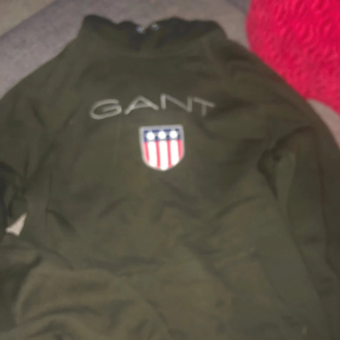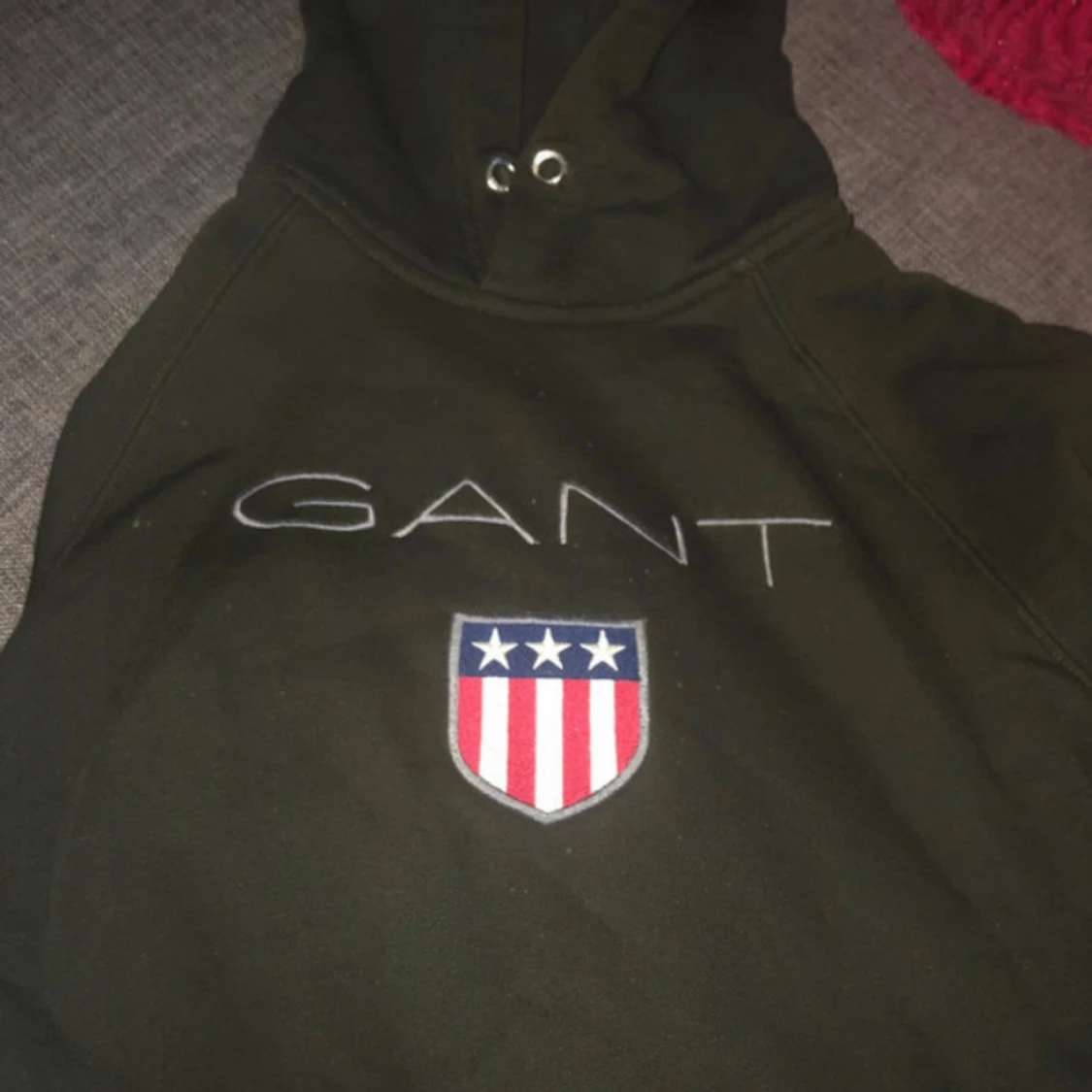 Snygg mörkgrön hoodie från GANT med broderad logga och emblem på bröstet. Tröjan har huva med snörning och klassisk känguruficka framtill. Perfekt för dig som gillar stilren streetwear med sportig touch.