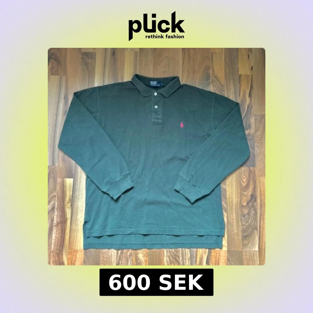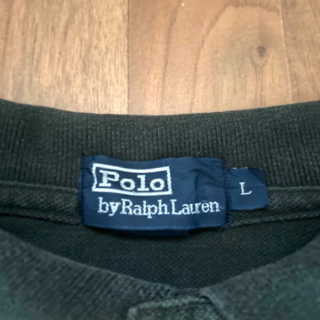 Klassisk mörkgrön långärmad pikétröja från Polo Ralph Lauren med krage, knappar och ikonisk röd logga broderad på bröstet. Tillverkad i mjuk bomull och perfekt för en stilren och avslappnad look.
