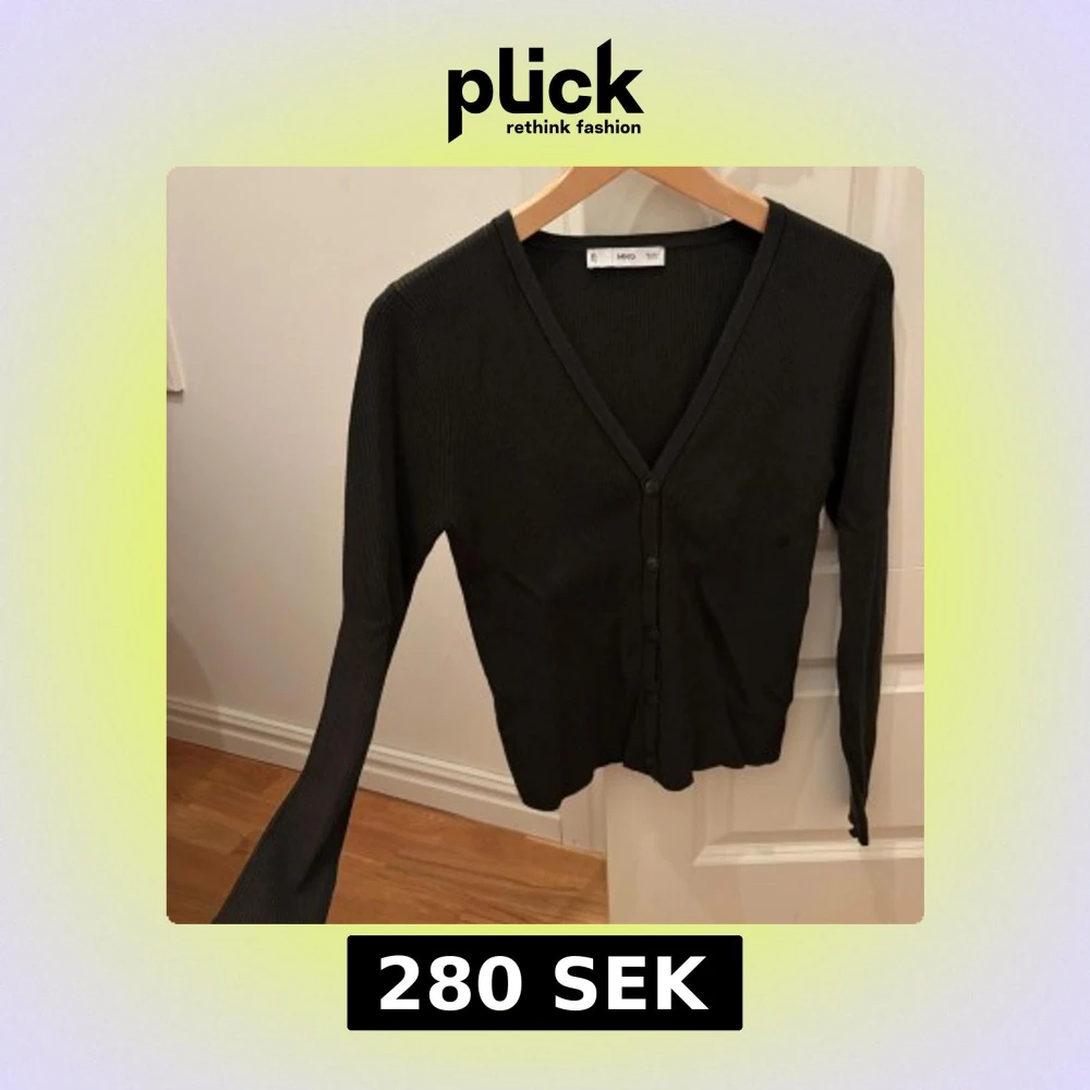 Ny utan prislapp! Mörkgrön ribbad kofta från Mango i storlek S. Koftan har v-ringning, långa ärmar och knäppning framtill.