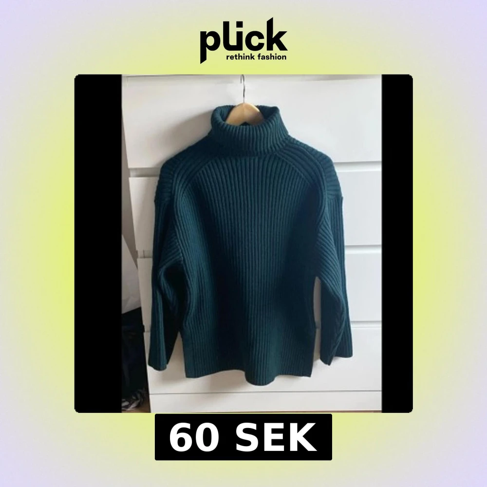 Säljer en mörkgrön, ribbstickad polotröja med hög krage. Tröjan har en loose passform och långa ärmar, perfekt för kyliga dagar. Materialet är tjockt och mysigt, vilket gör den extra skön att bära under höst och vinter. Använd väldigt ofta men sparsamt använd.