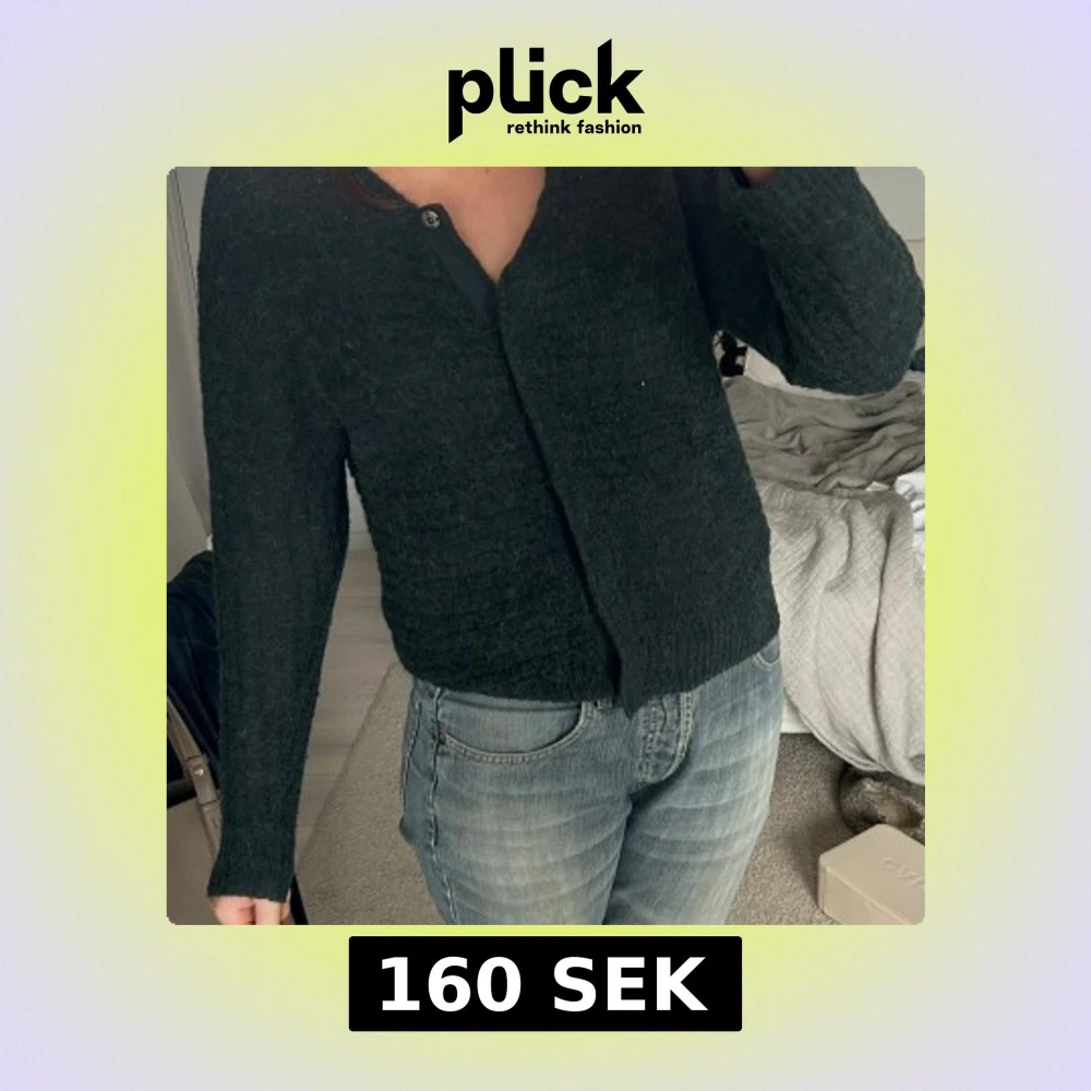 Säljjer en jättefin mörkgrön stickad kofta
