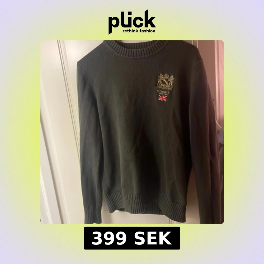 Snygg mörkgrön stickad tröja från Morris med broderad logga och brittisk flagga på bröstet. Tröjan har rund halsringning och ribbade muddar vid ärmslut och nederkant. Perfekt för dig som gillar klassisk stil med en twist. Pris kan diskuteras.