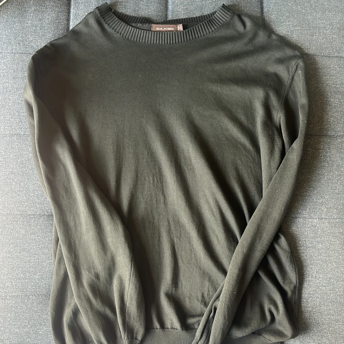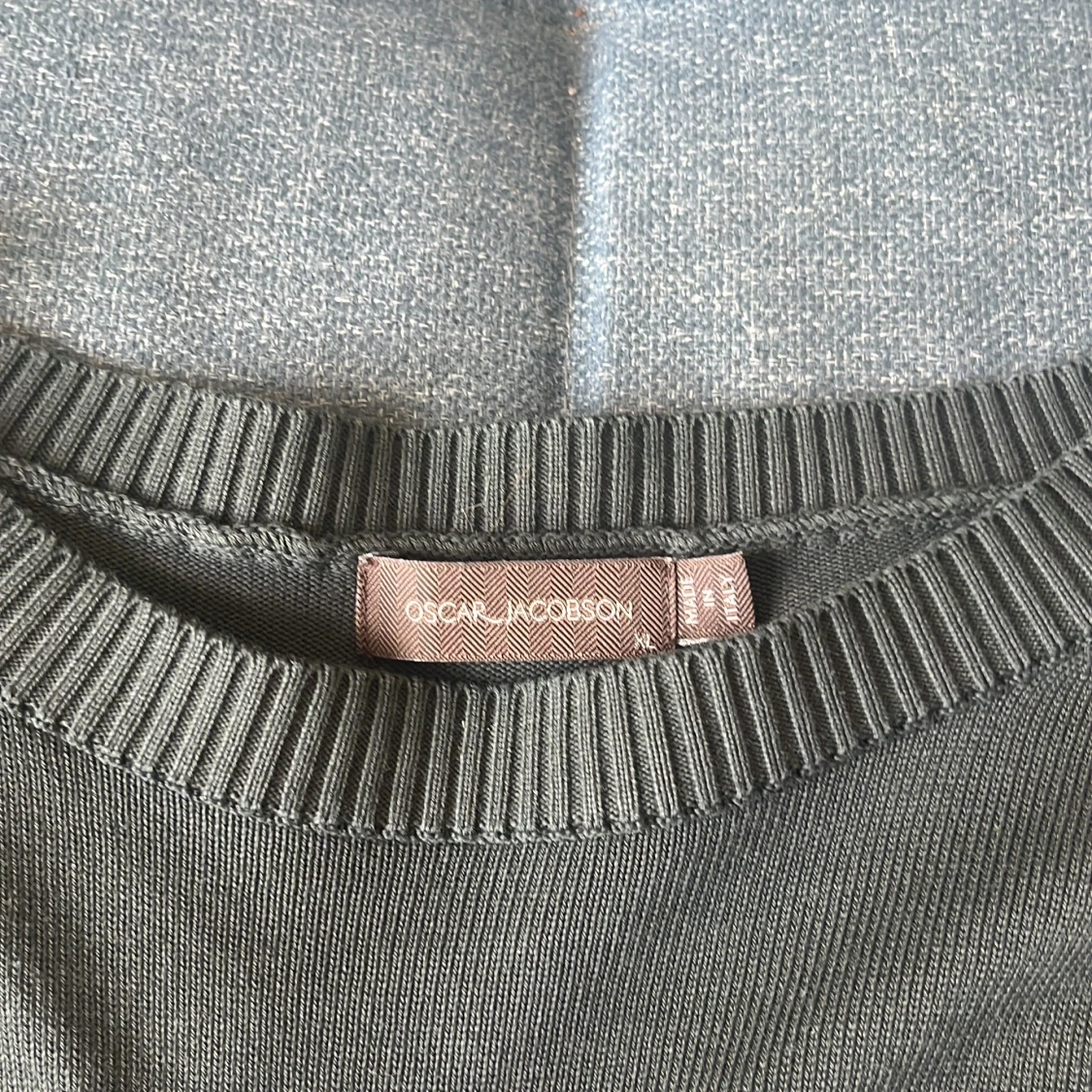 Stilren mörkgrön tröja från Oscar Jacobson i storlek XL. Tröjan har rund halsringning med ribbade detaljer och långa ärmar. Perfekt för dig som gillar en klassisk och enkel look. Materialet känns mjukt och passar bra till lager-på-lager.
