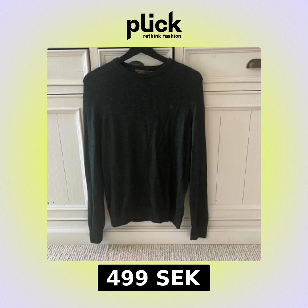 Säljer en stilren mörkgrön stickad tröja från Morris, tillverkad i merinoull. Tröjan har en klassisk design med rund hals och långa ärmar. En liten logga pryder bröstet för en diskret touch. Storlek är M men den skulle också kunna passa S. Inget slitage, ser som ny ut😁Priset är diskutabelt.