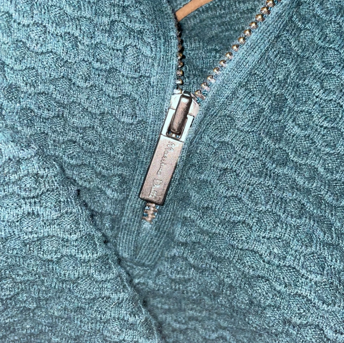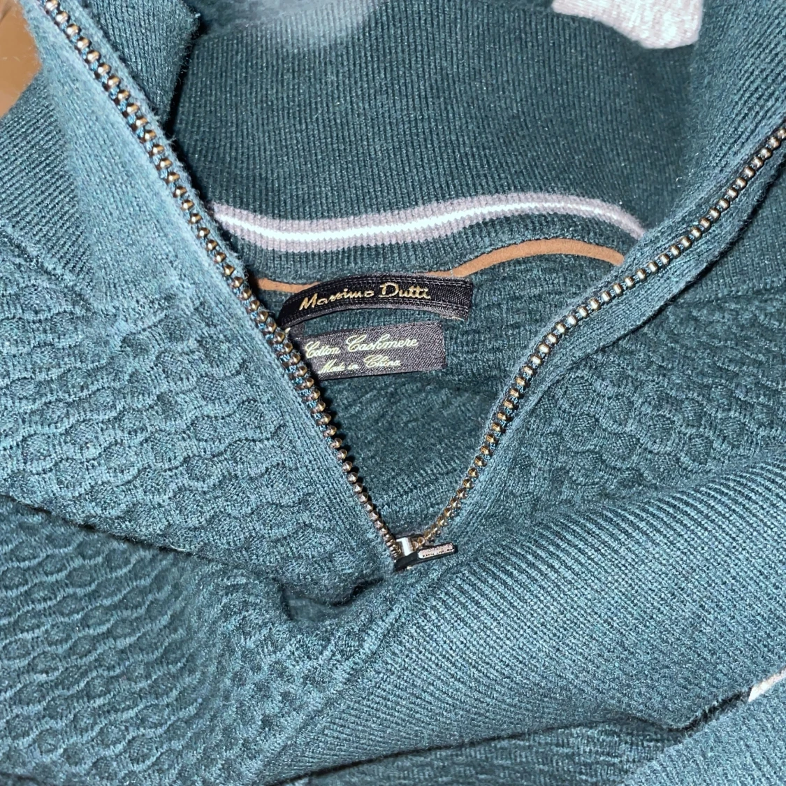 Snygg mörkgrön tröja från Massimo Dutti med dragkedja i kashmir och texturerat mönster. Perfekt för kyligare dagar med sin stilrena design och bekväma passform.