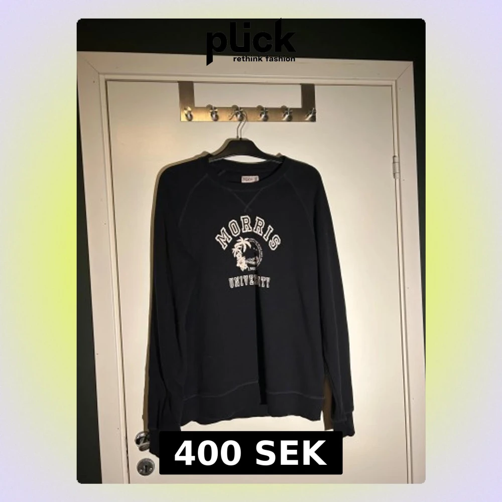 Mörkblå Morris crewneck, använd 2-3 gånger. Stilren och passar till allt. Pris ej hugget i sten och ställ gärna frågor!