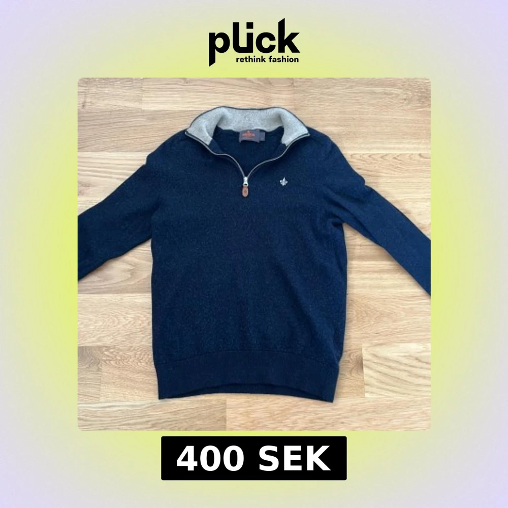 Säljer en stilren mörkblå tröja från Morris i 100% merinoull. Tröjan har halv dragkedja vid kragen, En snygg logga på bröstet och ribbade muddar. Perfekt för lite kyligare dagar. Tröjan har blivit mindre under tiden och skulle nu säga att den är i storlek xxs, kommer någ att passa perfekt för någon som är mellan 150-155 cm lång. Om du funderar över något är det bara att fråga.
