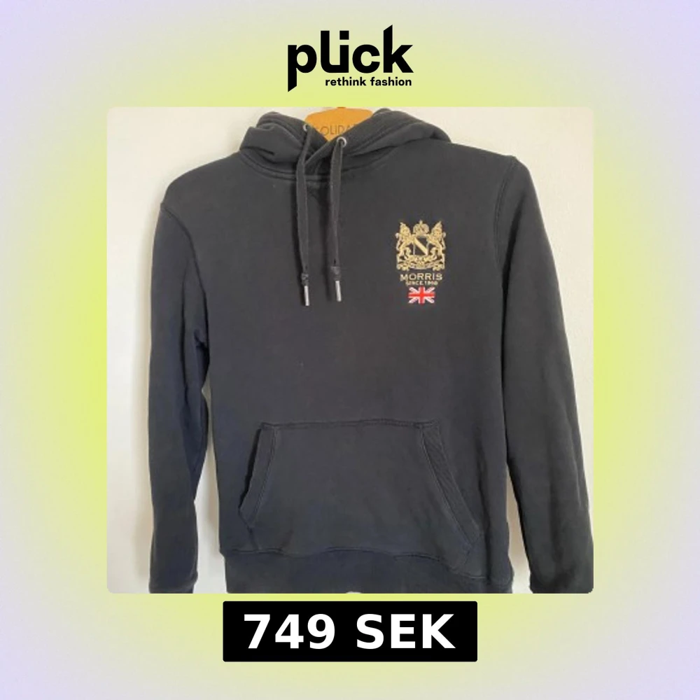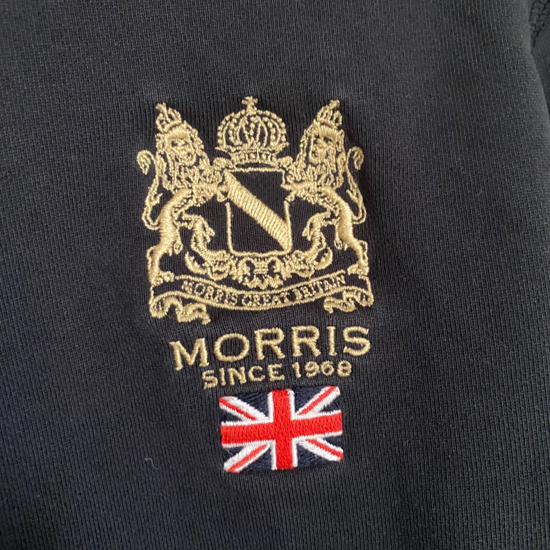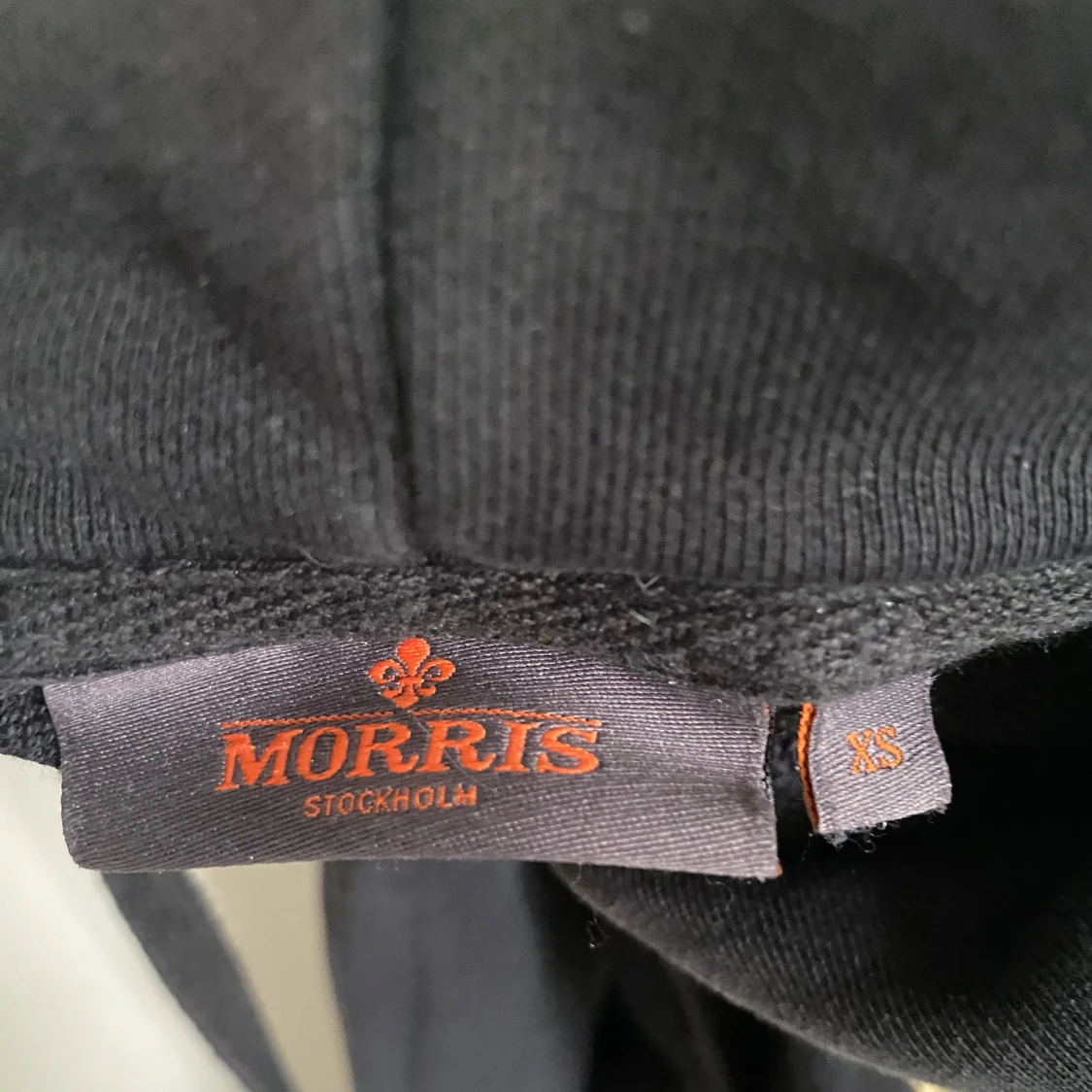 Säljer en stilren svart hoodie från Morris med broderad logga och Union Jack på bröstet. Perfekt hoodie för sommarkvällar och den är i mycket bra skick.