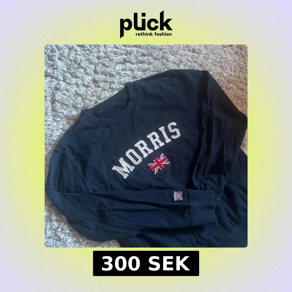 Säljer denna riktigt snygga svarta Morris crewneck. Tröjan är i storlek L och är i bra skick utan defekter. Bara att skriva över frågor och funderingar.