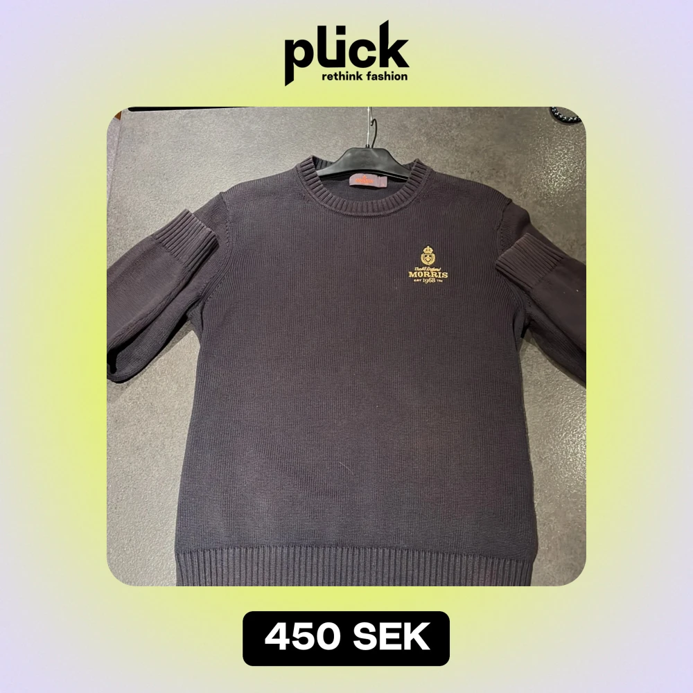 Säljer en snygg mörkblå tröja från Morris med broderad logga på bröstet. Tröjan är i bra skick och perfekt för både höst och vinter. Den har en klassisk rund hals och ribbade muddar för en bekväm passform. Är storlek L men sitter mer som en M. Priset går att diskutera vid snabb affär