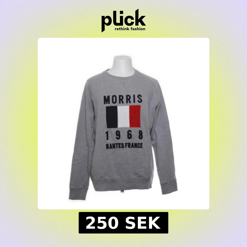 Snygg grå sweatshirt från Morris med tryck framtill i form av franska flaggan och texten 'Morris 1968 Nantes France'. Tröjan har rund halsringning och långa ärmar. Perfekt för dig som gillar stilren och sportig look. L men passar M