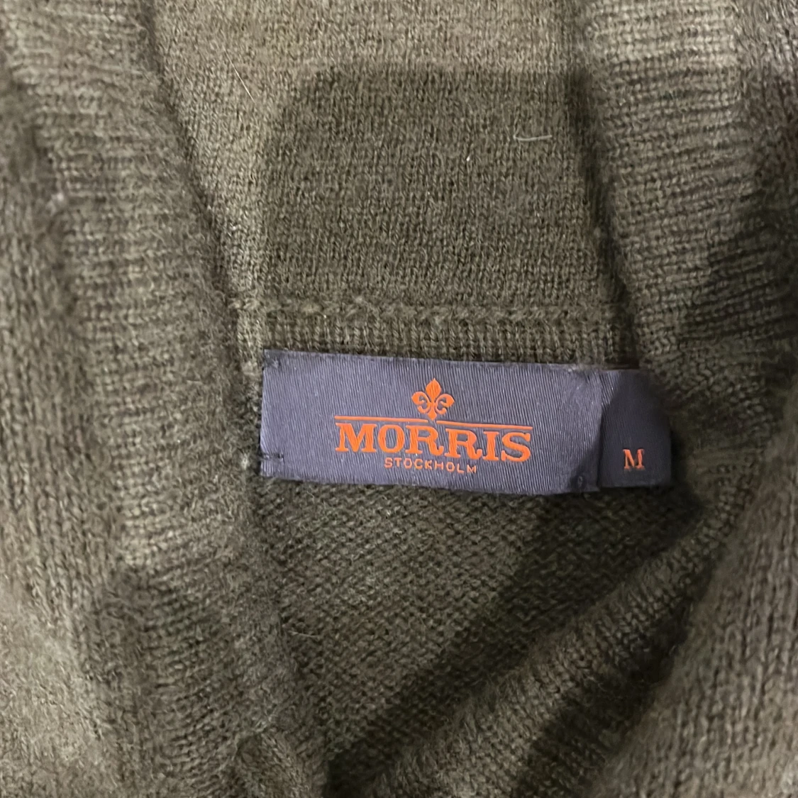 Säljer en stilren olivgrön hoodie från Morris. Tröjan har en liten broderad detalj på bröstet och är tillverkad i ett mjukt material. Perfekt för en avslappnad look. Det är kasmir