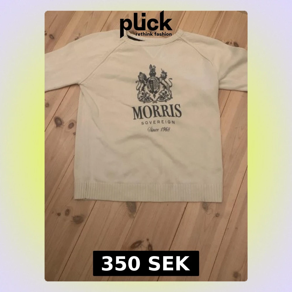 Snygg beige tröja från Morris med stort tryck och emblem på bröstet. Tröjan har rund hals, ribbade muddar och gråa armbågslappar. Union Jack-detalj på ärmen. Perfekt för dig som gillar klassisk stil med en twist. Pris kan diskuteras!😇