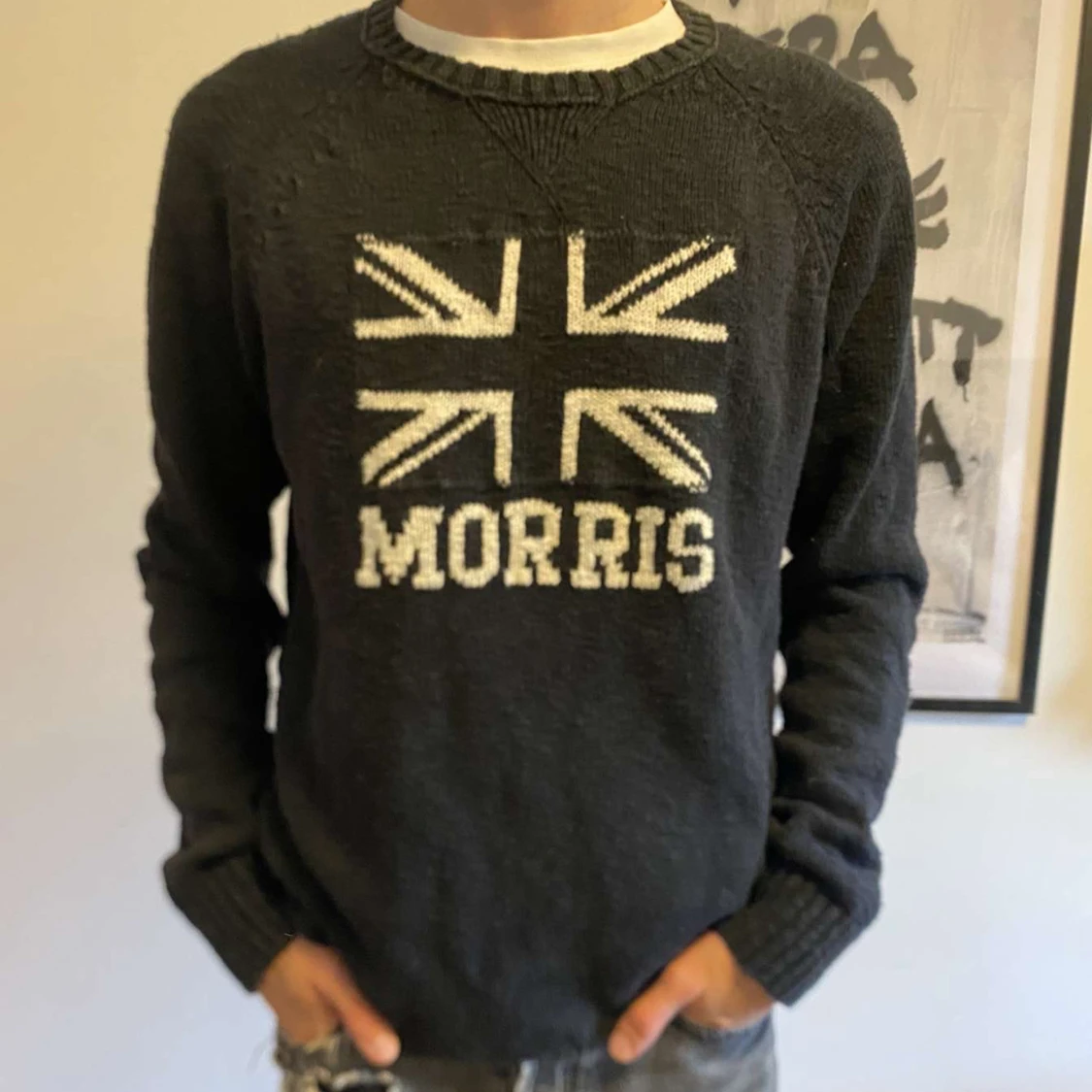 Mörkblå stickad tröja från Morris|| Storlek M och modellen är 182cm och väger 70kg|| Mycket bra skick|| Hör av dig vid minsta fundering!!
