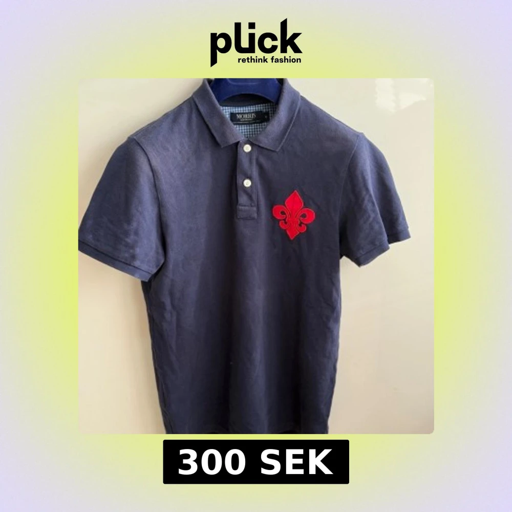 Snygg mörkblå pikétröja från Morris i 100% bomull. Tröjan har korta ärmar, klassisk krage och knäppning med två knappar. Stor röd brodyr framtill och Morris-text i rött på ryggen. Perfekt för en stilren och sportig look.