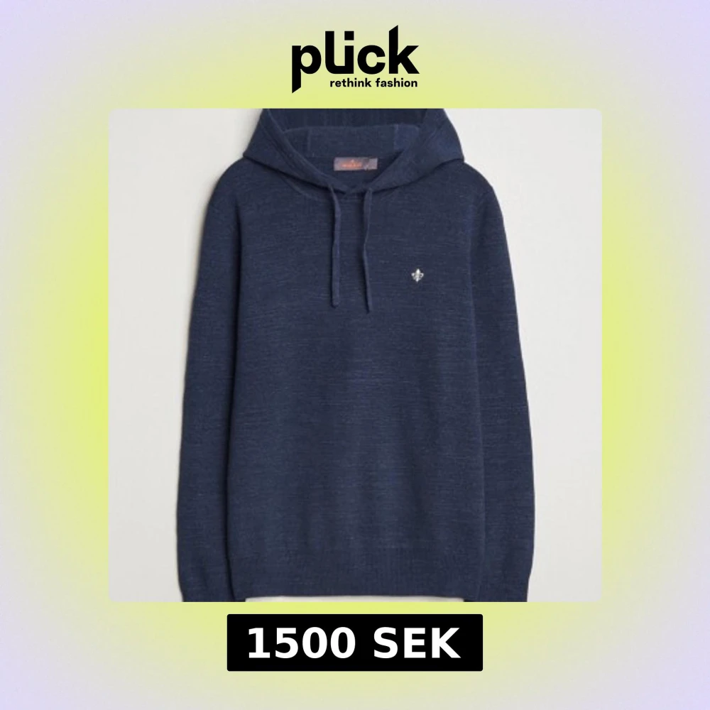 Mörkblå stickad hoodie från Morris