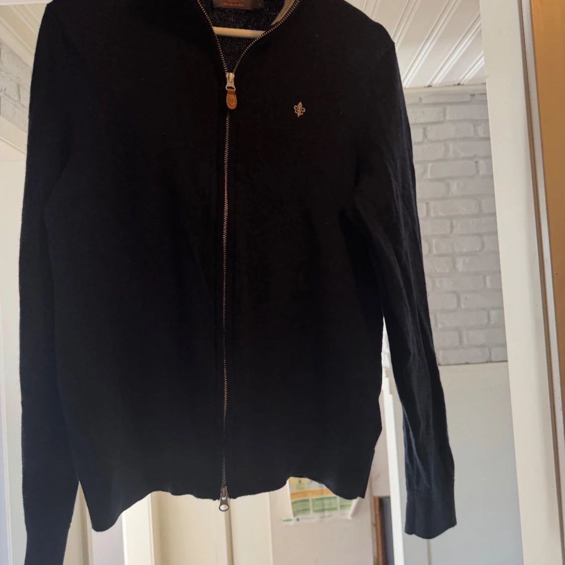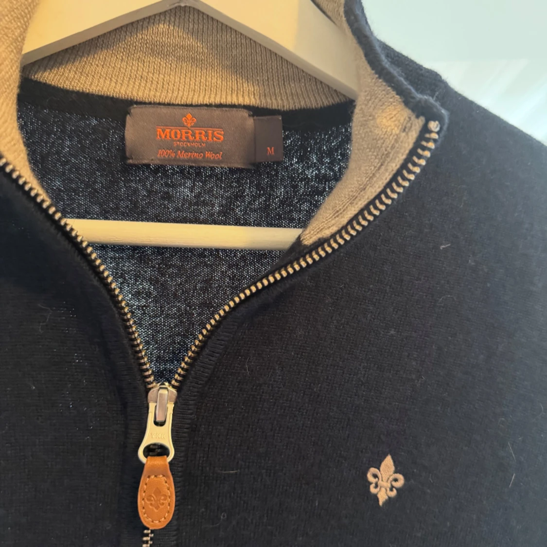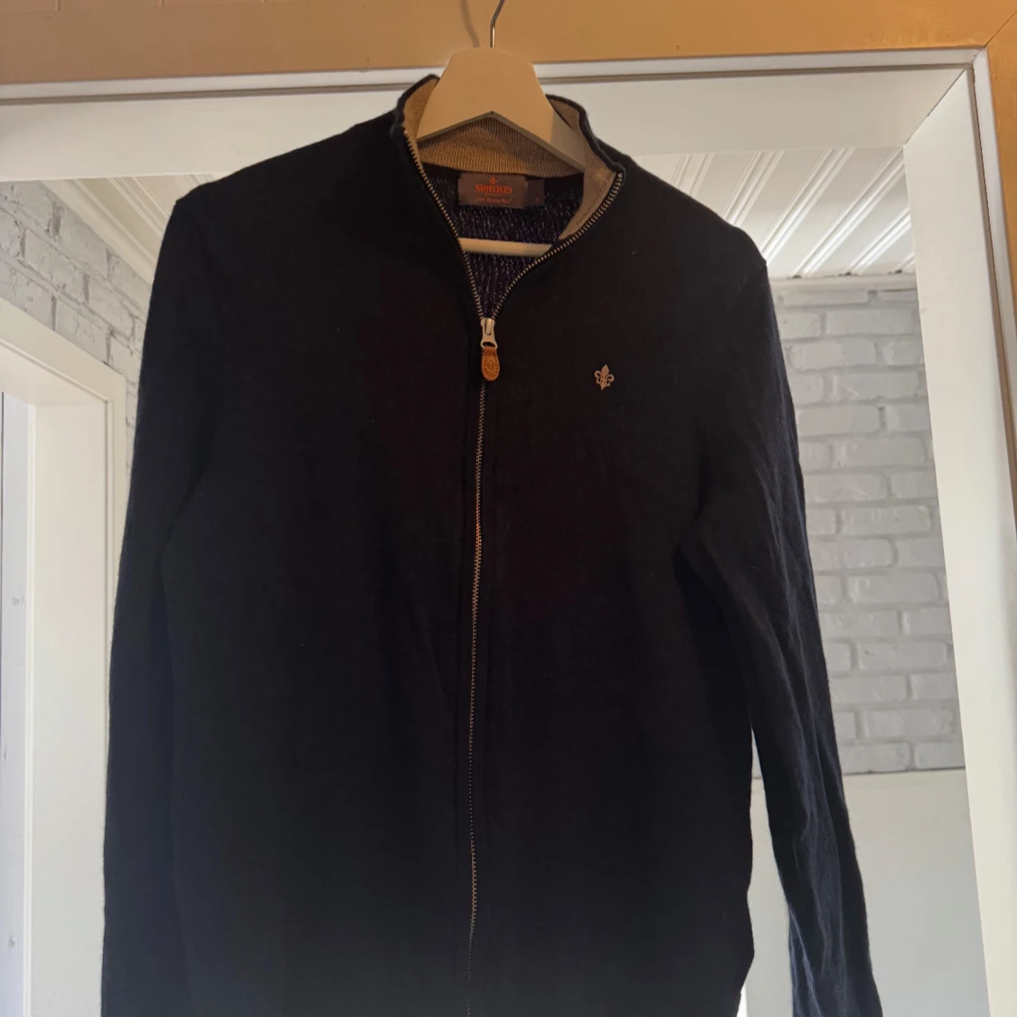 Snygg svart kofta från Morris i 100% merinoull med dragkedja och diskret logga på bröstet. Koftan har lång ärm och stilren design med kontrastfärgad insida vid kragen. Perfekt för dig som gillar klassisk och clean stil.