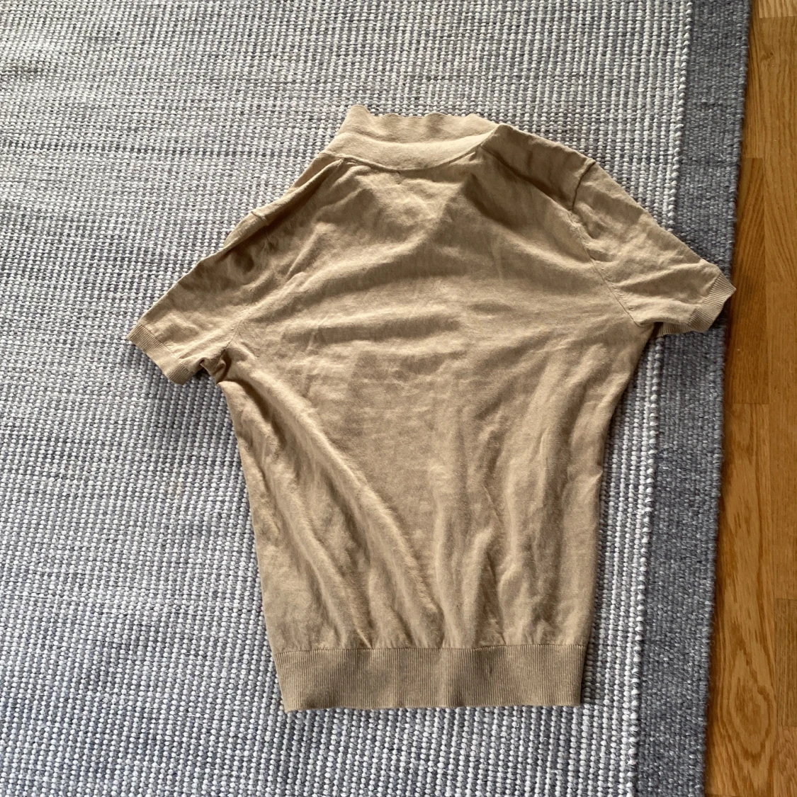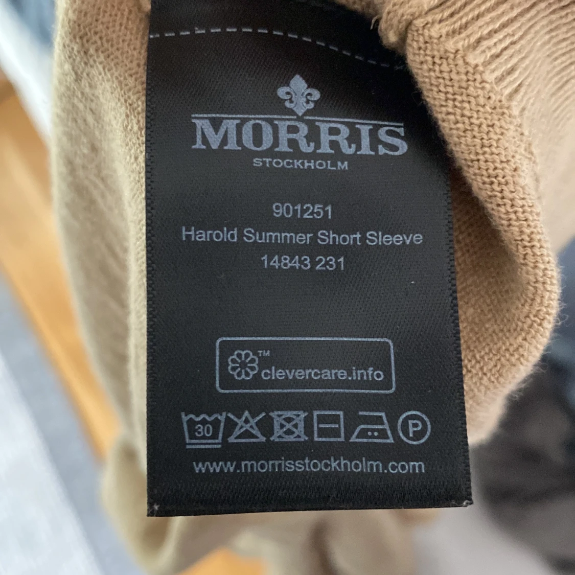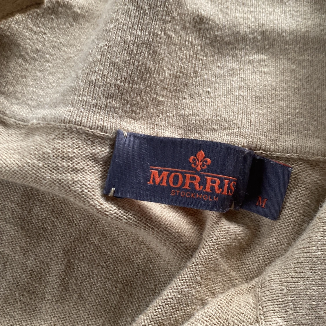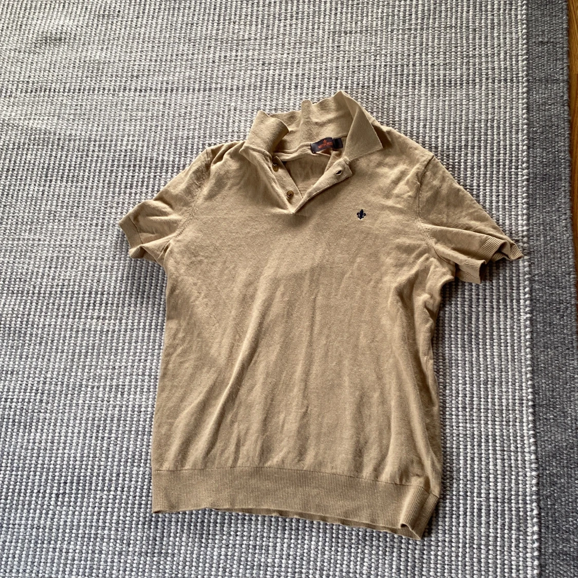 Snygg beige pikétröja från Morris med klassisk krage och korta ärmar. Tröjan har knappar vid halsen och en broderad svart lilja på bröstet. Knappt använd och inga defekter!