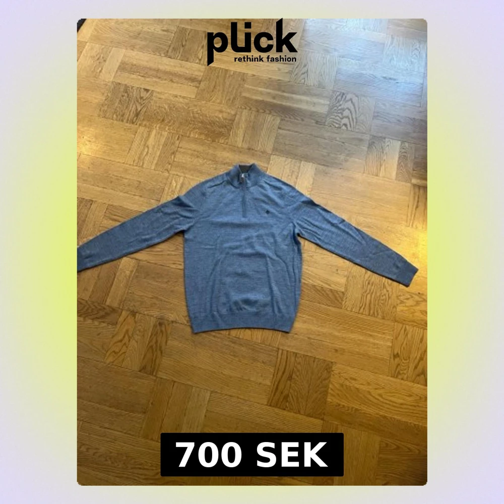 En snygg och aldrig använd stickad tröja i blå/grå ton med half-zip och hög krage från Morris. Klassisk och tidlös design som funkar perfekt till både vardag och mer uppklädda outfits. Mjuk och bekväm – perfekt lager-på-lager under jacka eller kappa.