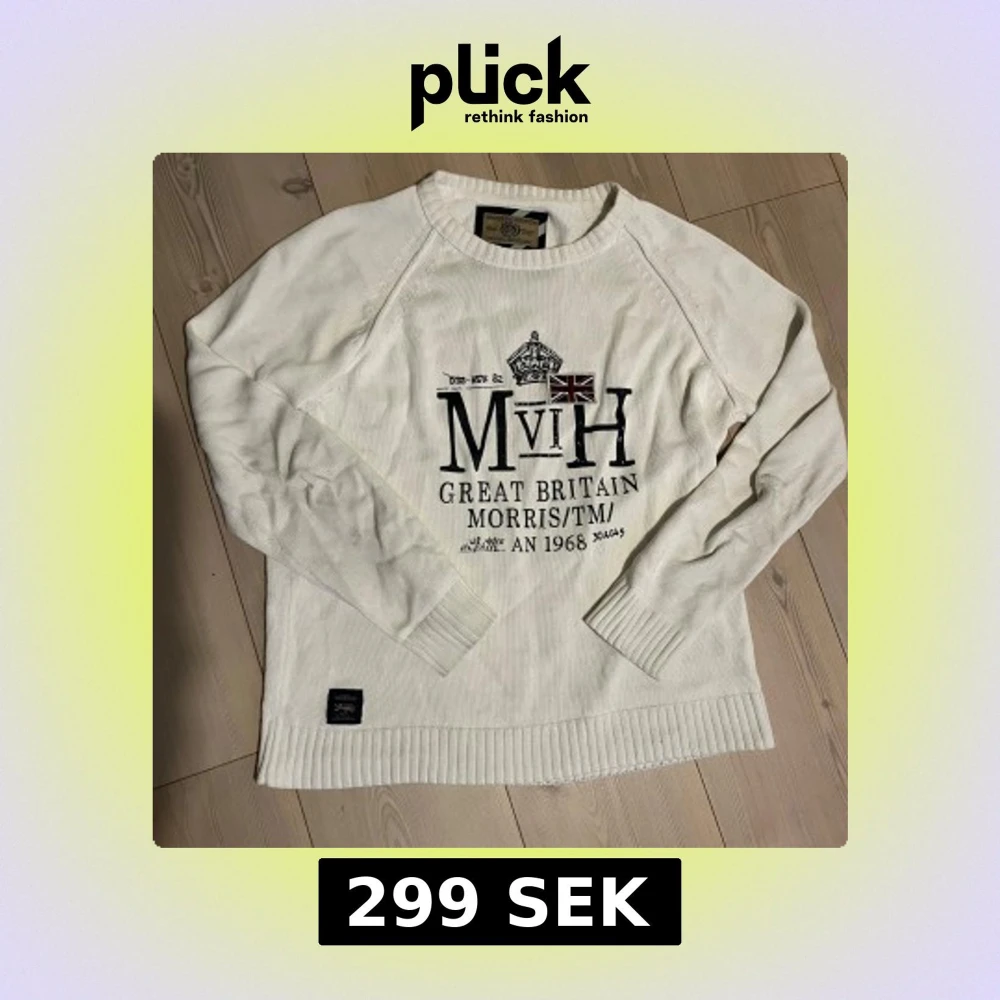 Säljer en vit tröja från Morris med tryck på framsidan. Tröjan har långa ärmar och ribbade muddar vid ärmslut och nederkant. Perfekt för en stilren look. Skriv vid funderingar