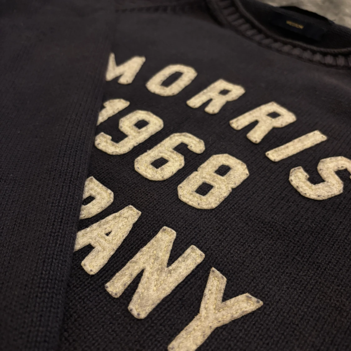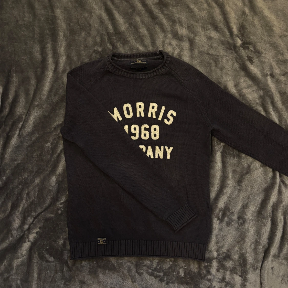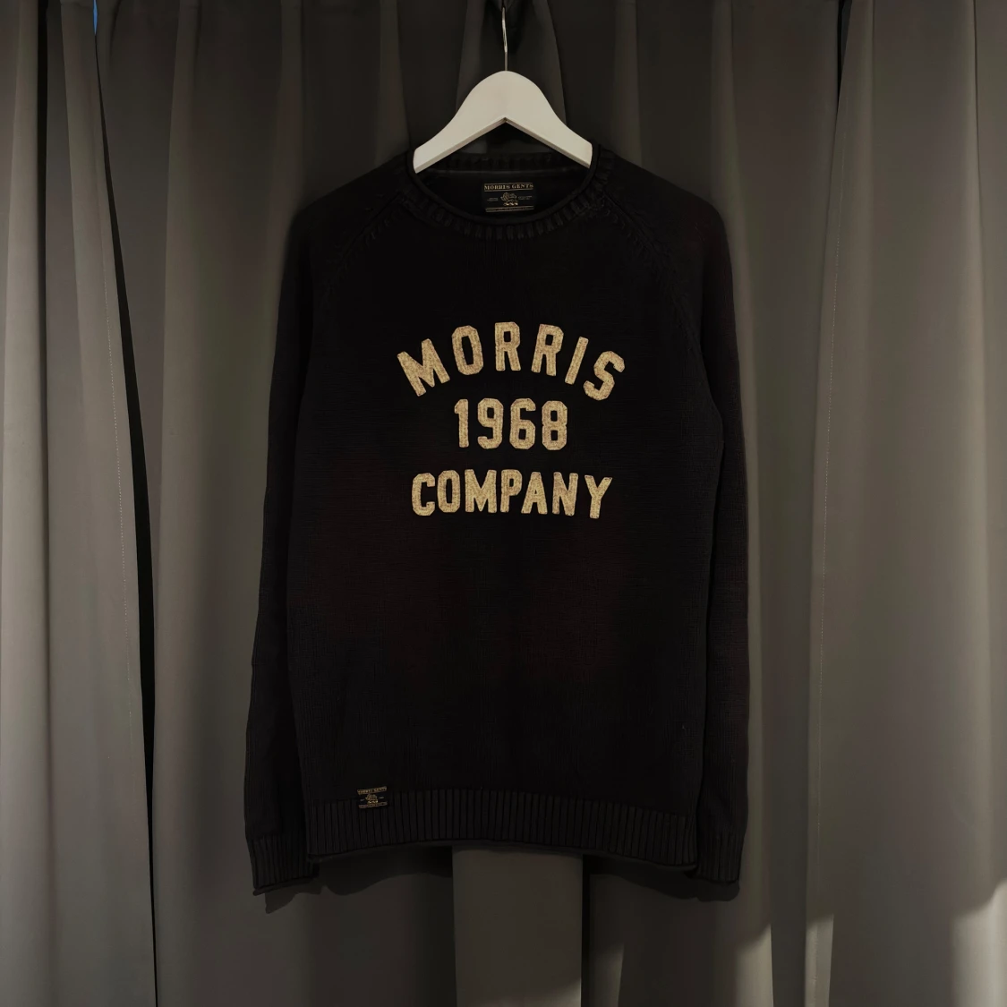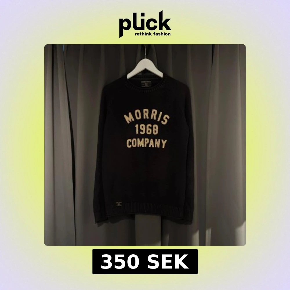 Snygg svart tröja från Morris med texten 'Morris 1968 Company' i vitt/beige på framsidan
