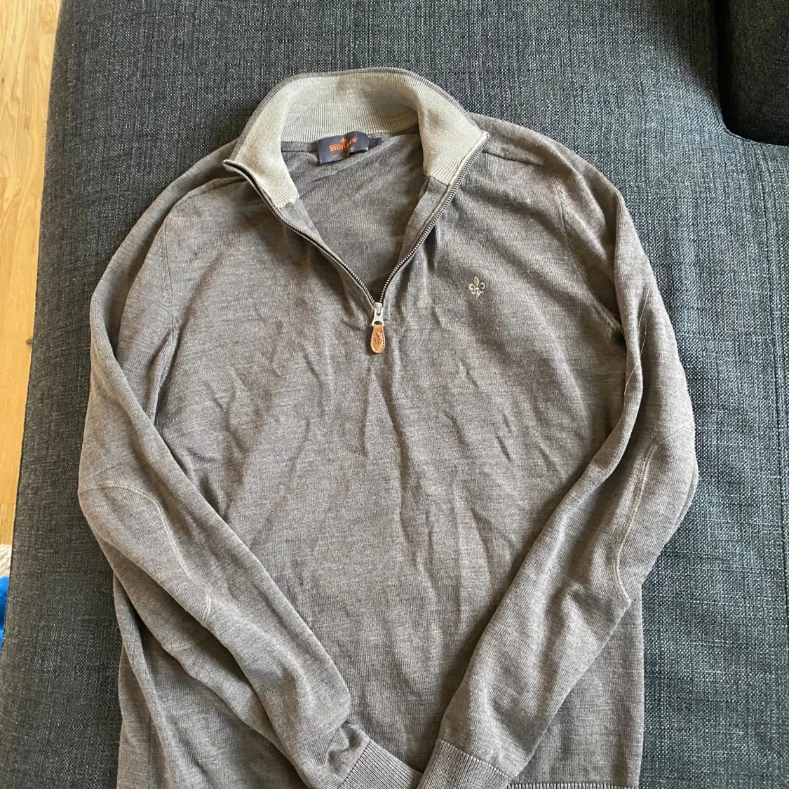Snygg grå polotröja från Morris i 100% merinoull. Tröjan har half zip med ribbad krage och muddar, samt en liten broderad logga på bröstet. Perfekt för dig som gillar stilrena och bekväma plagg med premiumkänsla.