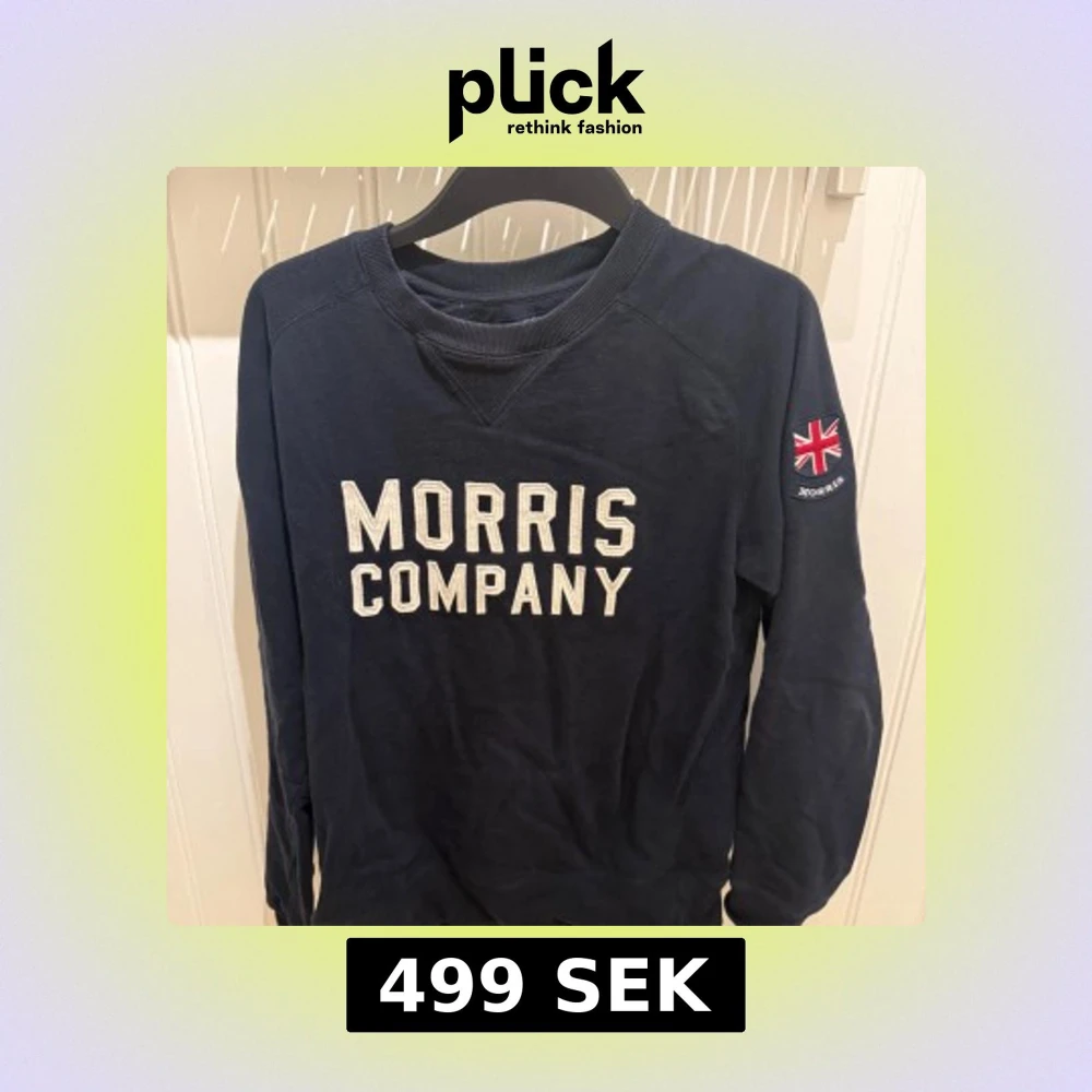 Mörkblå sweatshirt från Morris Company med broderad logga framtill och brittisk flagga på ärmen. Klassisk rund halsringning och långa ärmar. Perfekt för dig som gillar stilren och sportig look.