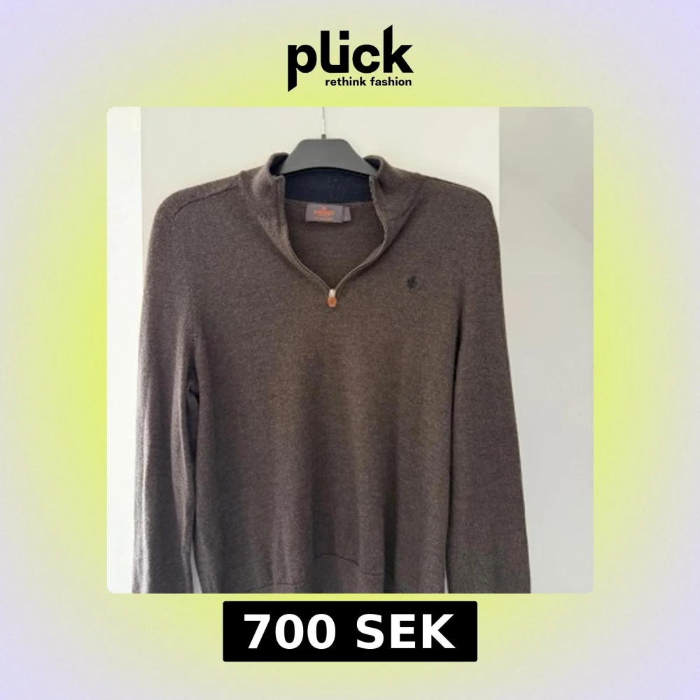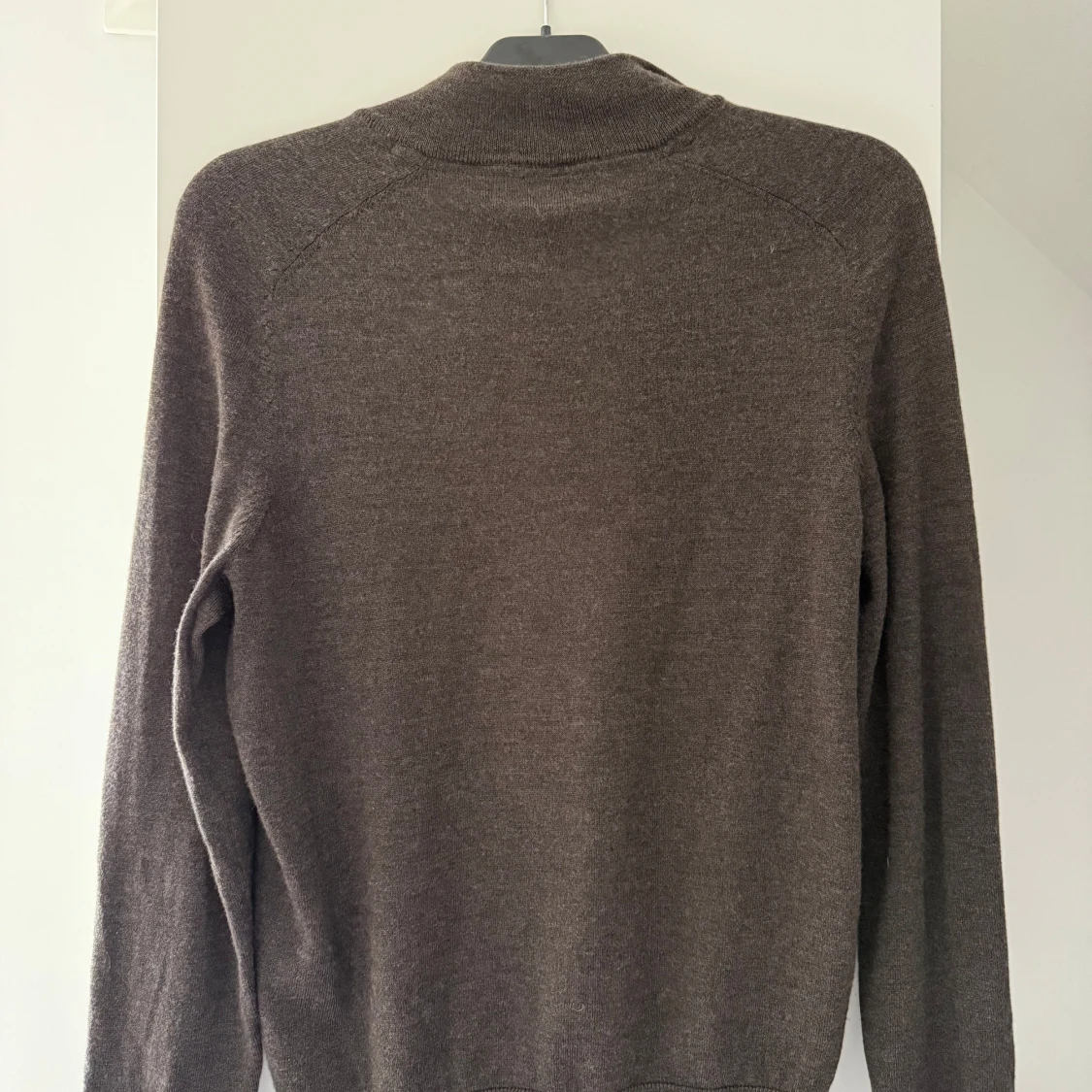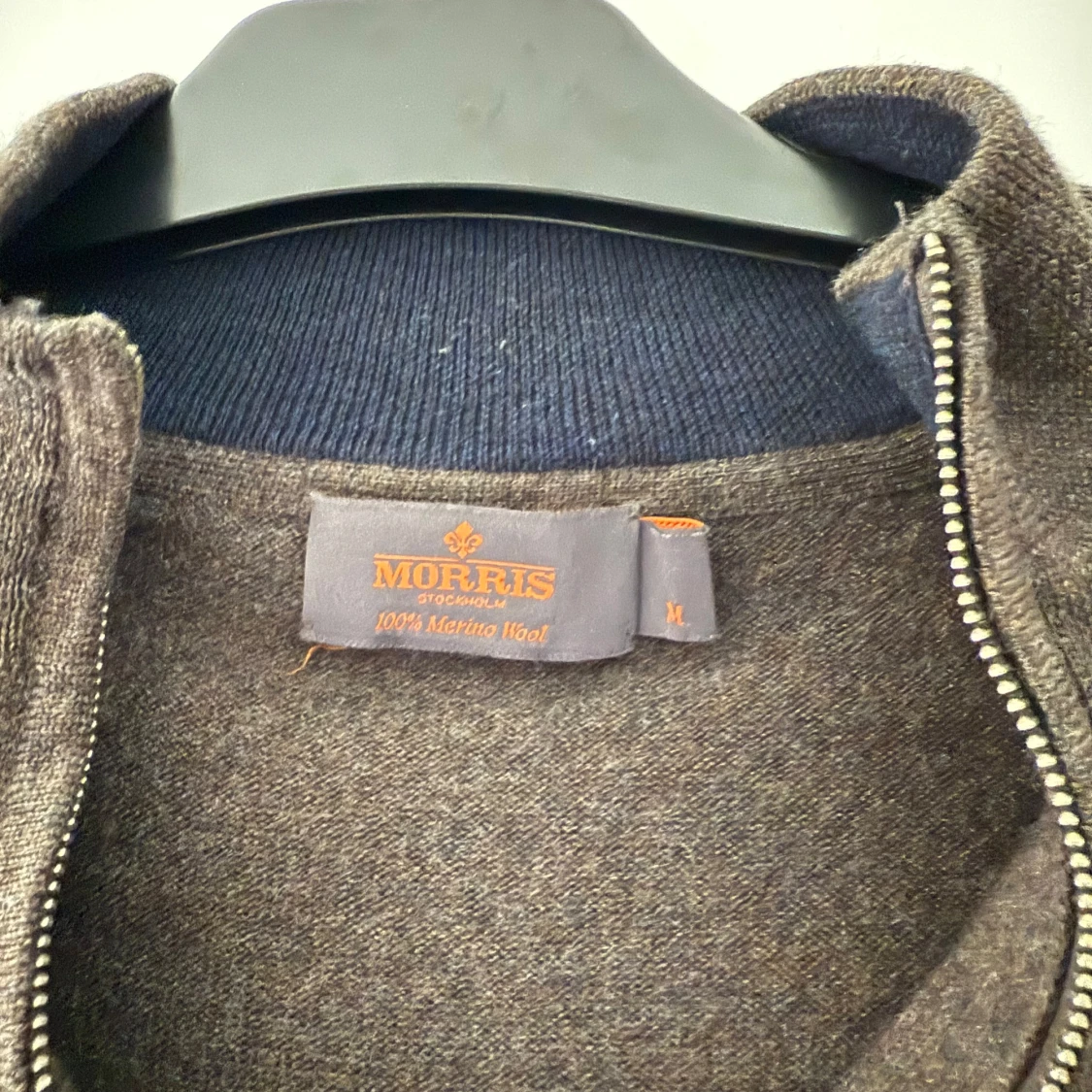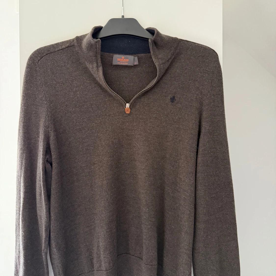 Snygg brun långärmad tröja från Morris i 100% merinoull. Tröjan har en stilren half zip-dragkedja vid halsen och en liten broderad logga på bröstet. Perfekt för dig som gillar klassisk och enkel stil med premiumkänsla.