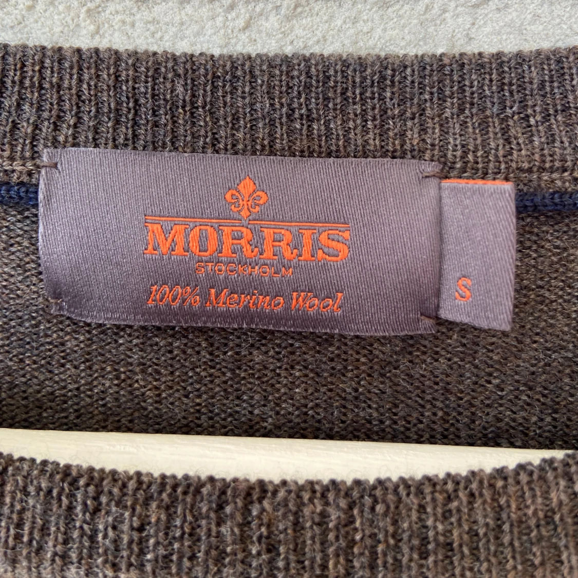 Snygg brun/svart tröja från Morris i 100% merinoull. I riktigt bra skick. Klassisk rund halsringning, broderad logga på bröstet. Perfekt för dig som gillar stilrena och bekväma plagg. Extra snygg om man ska ut och äta en kväll eller ha på sig den en skön sommarkväll. 🤩