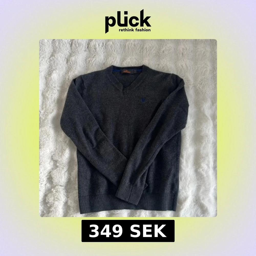 Säljer en mörkgrå v-ringad tröja från Morris med en blå broderad logga på bröstet. 100% merinoull . Bra skick förutom att lappen är lite trasig se bild 3. Storlek L sitter dom xs, hör av er vid frågor