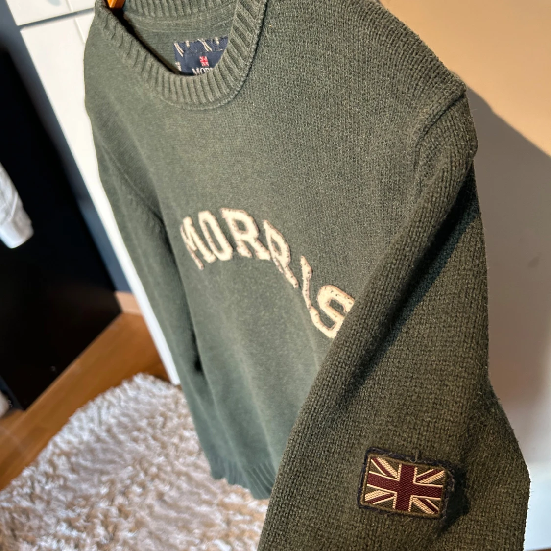 Olivfärgad stickad tröja från Morris, perfekt för hösten och kommande vinter. I fint skick, inga defekter alls.