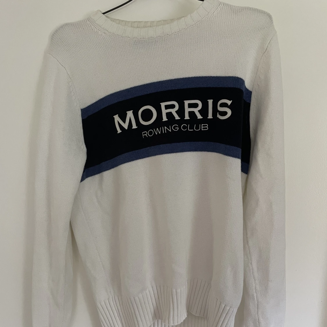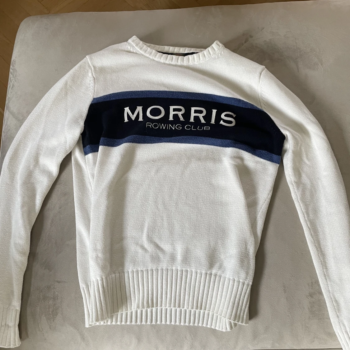 Stickad morris tröja i storlek S har Använts 1 gång och har inga skador alls, köpt på morris butik i göteborg. 10/10 skick