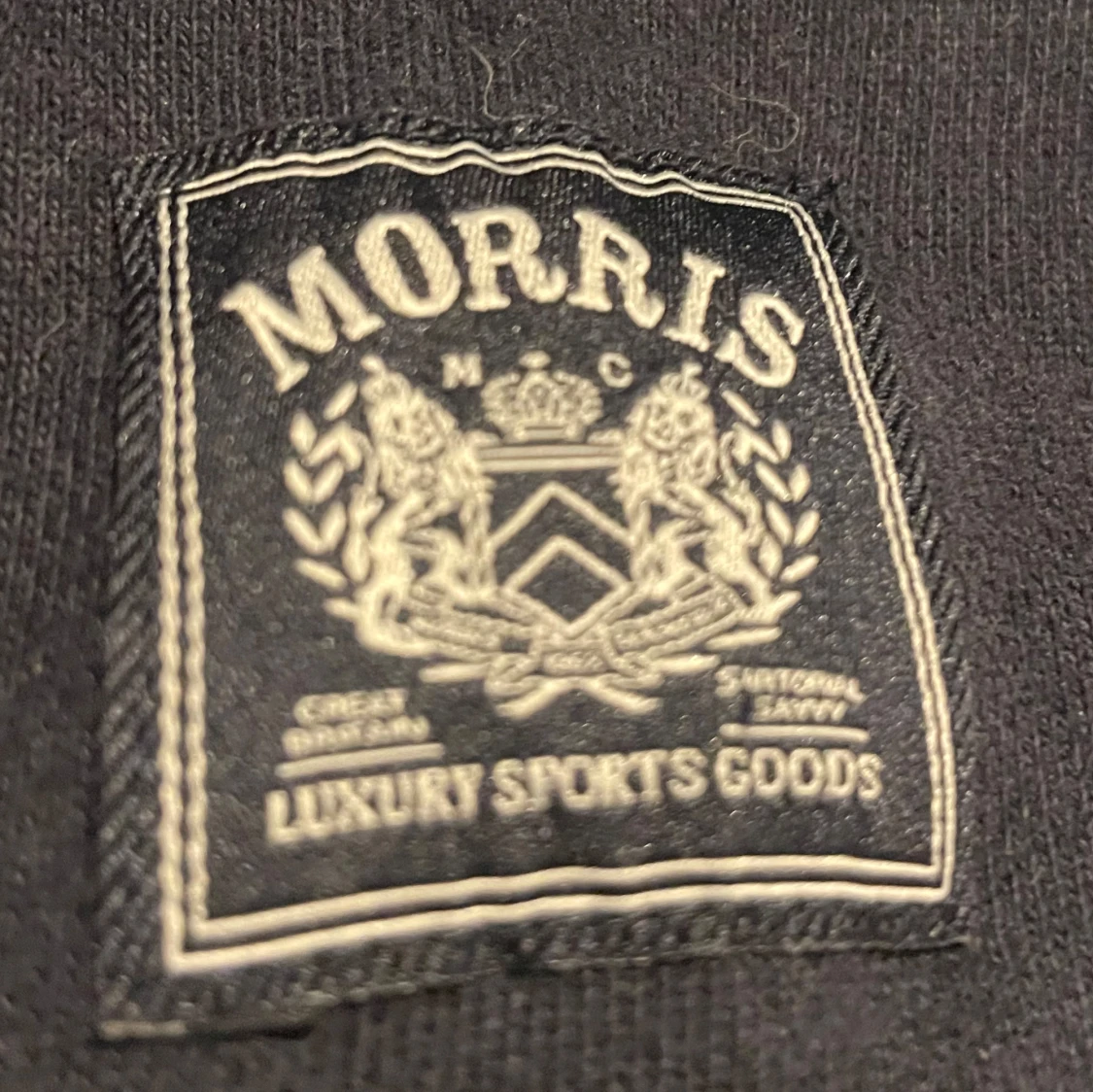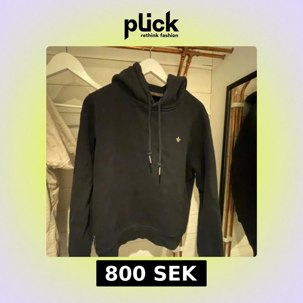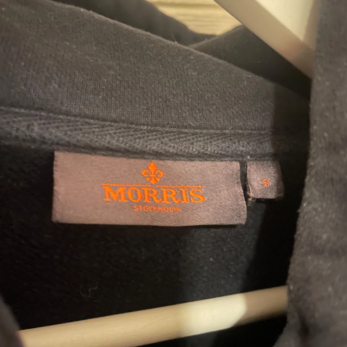 Svart hoodie från Morris Stockholm med huva och snörning. Tröjan är i storlek M men passar S.