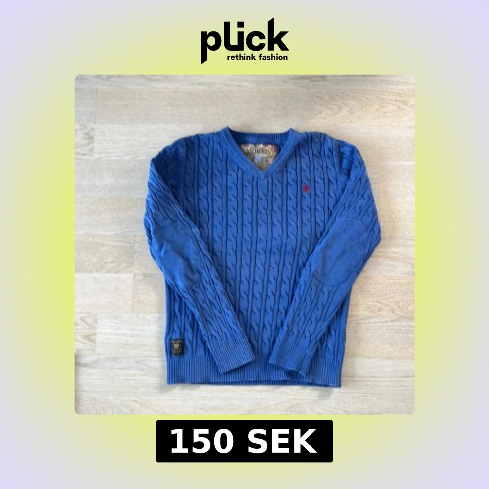 Säljer en snygg blå stickad tröja från Morris med ett klassiskt flätmönster. Tröjan har en v-ringad hals och långa ärmar. Perfekt för kyligare dagar. Kontakta mig för mer info eller köp direkt! 💙