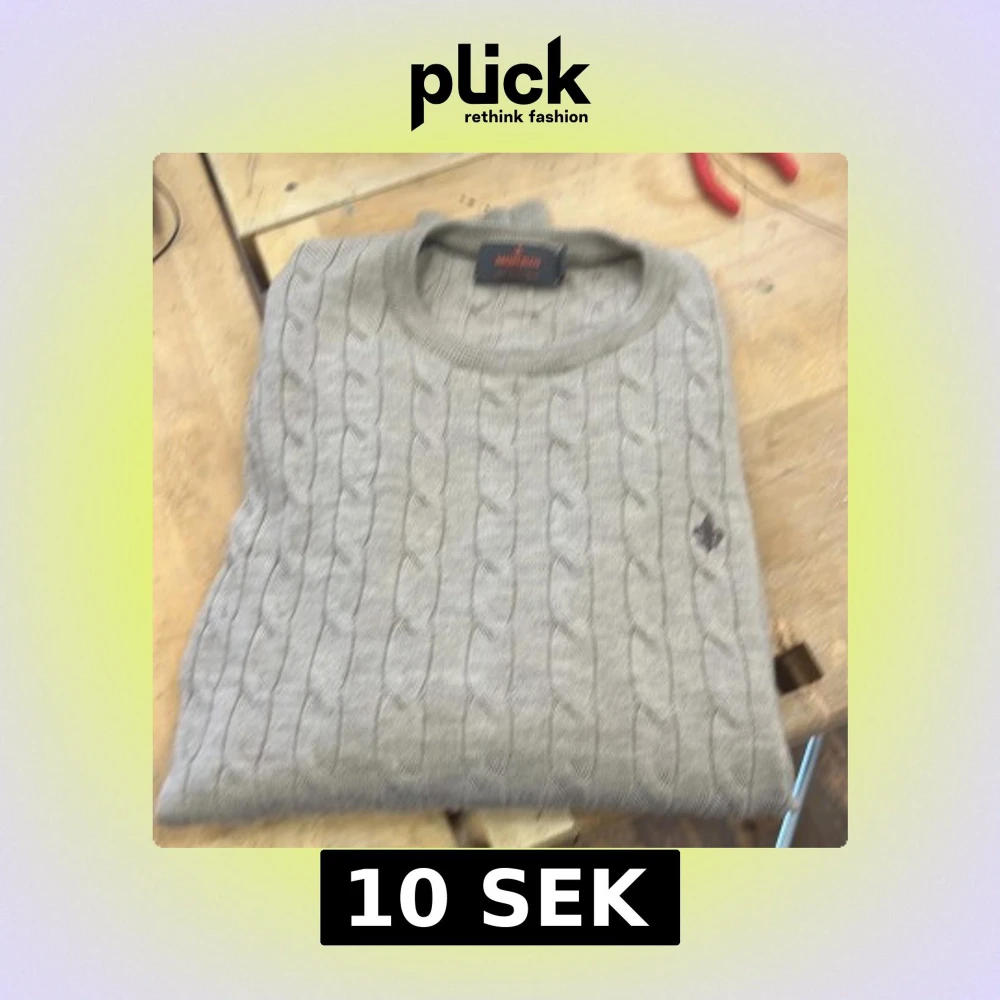 Säljer en stilren grå kabelstickad tröja från Morris i 100% merinoull. Tröjan har en diskret logga på bröstet och rund halsringning. Perfekt för kyliga dagar!
