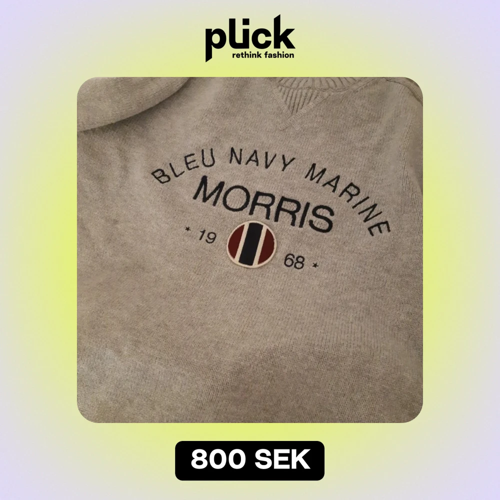 Säljer en snygg grå tröja från Morris med texten 'Bleu Navy Marine' och årtalet 1968 tryckt på framsidan. Perfekt för en avslappnad stil med en touch av klass. Tröjan är i bra skick och passar perfekt till både vardag och fest.