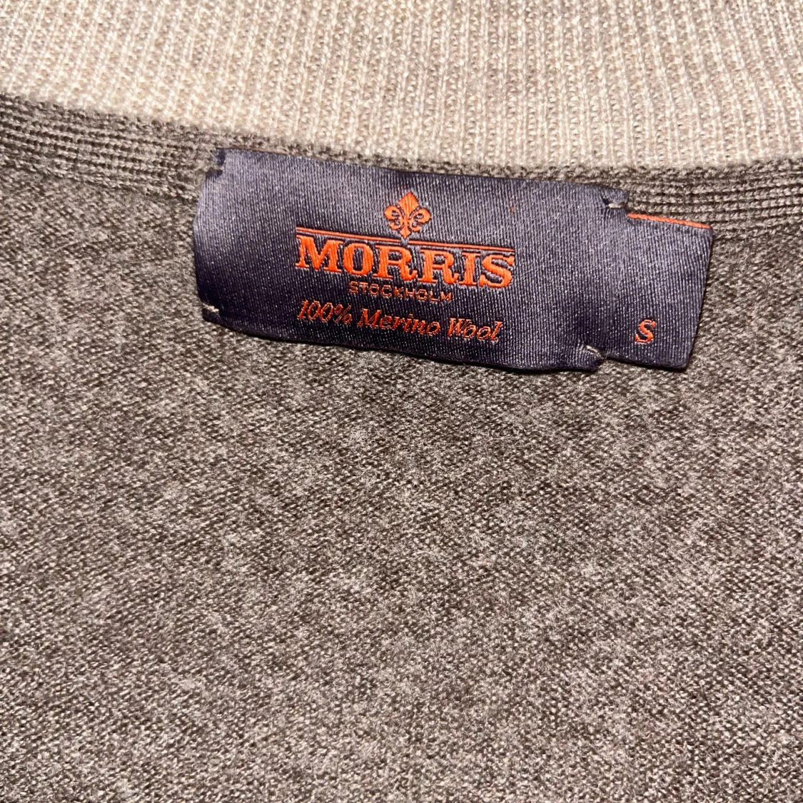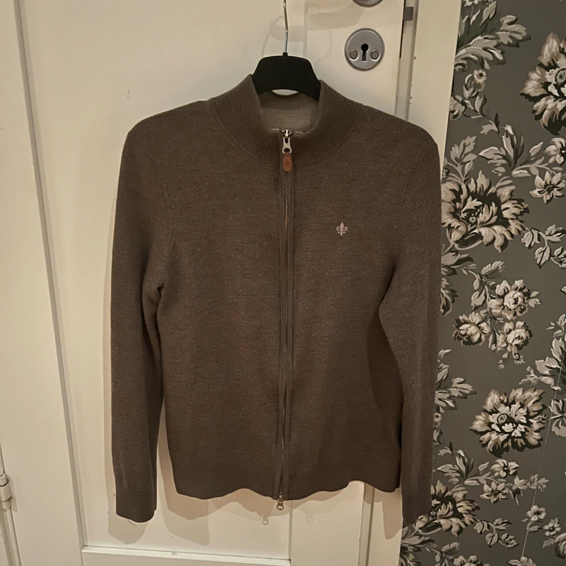 Snygg brun full zip från Morris i 100% merinoull med ribbad krage och hel dragkedja framtill. Liten broderad logga på bröstet och diskret, stilren design. Perfekt för dig som gillar klassiska och bekväma plagg med lite extra kvalitet. OBS träjan har krympt lite