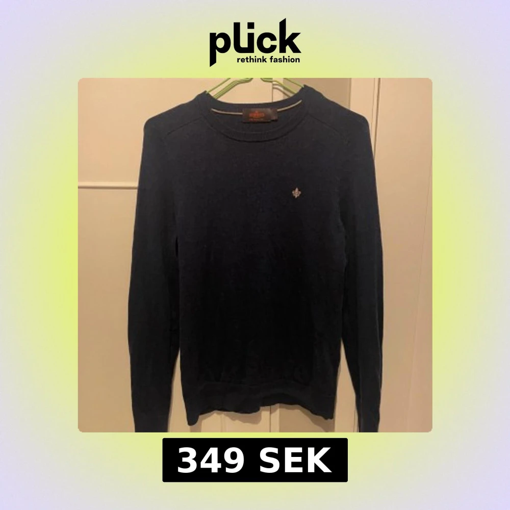 Säljer en stilren mörkblå tröja från Morris i 100% merinoull. Tröjan har en liten broderad detalj på bröstet och långa ärmar. Perfekt för kyligare dagar.