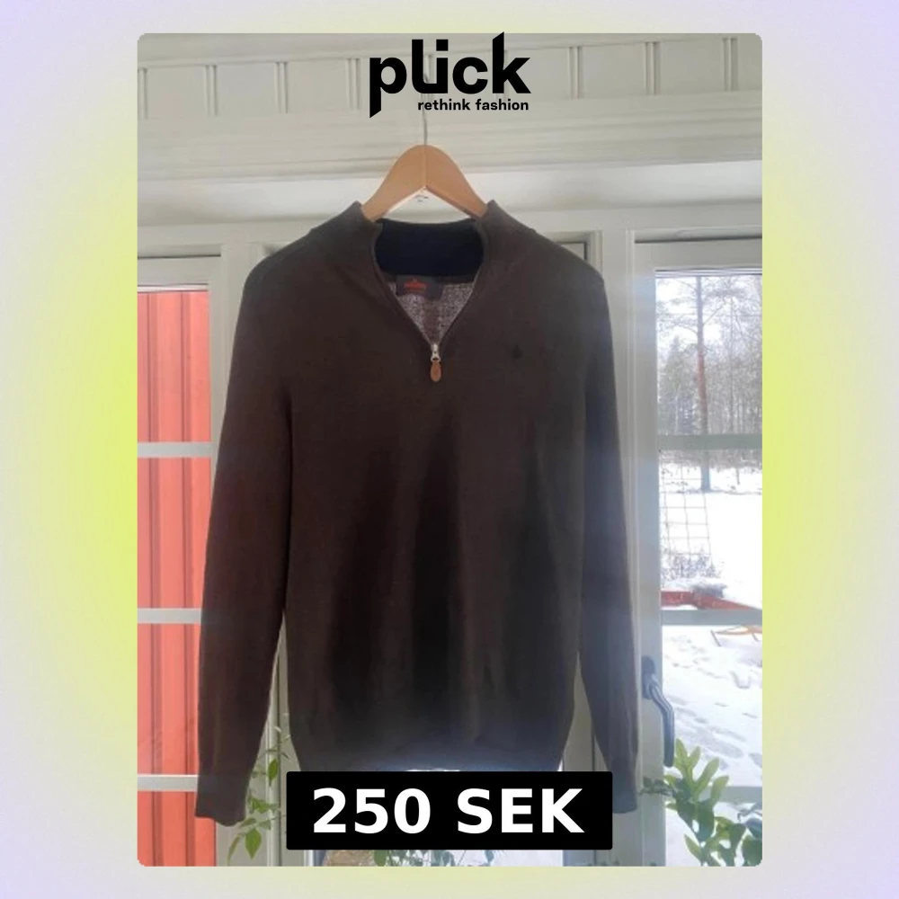 Säljer en mörkgrå stickad tröja från Morris med halv dragkedja och diskret broderad logga på bröstet. Tröjan har långa ärmar och ribbade muddar vid ärmslut och nederkant. Perfekt för lager på lager och snygg till jeans.