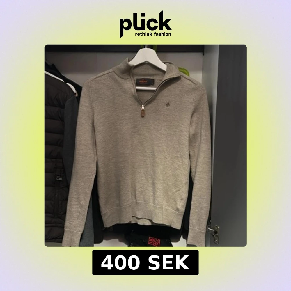 Säljer en stilren beige tröja från Morris i mycket bra skick. Den har en dragkedja vid halsen och ett diskret broderat emblem på bröstet. Perfekt för både vardag och lite finare tillfällen. Tröjan är s men passar som xs. Pris kan diskuteras Passar bra till höst och vår!
