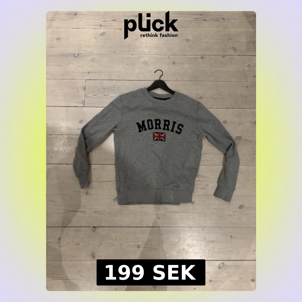 Grå sweatshirt från Morris med broderad Union Jack-flagga och texten MORRIS på bröstet. Tröjan har ribbade muddar vid ärmslut och nederkant samt en patch på ena ärmen. Perfekt för en avslappnad och stilren look.