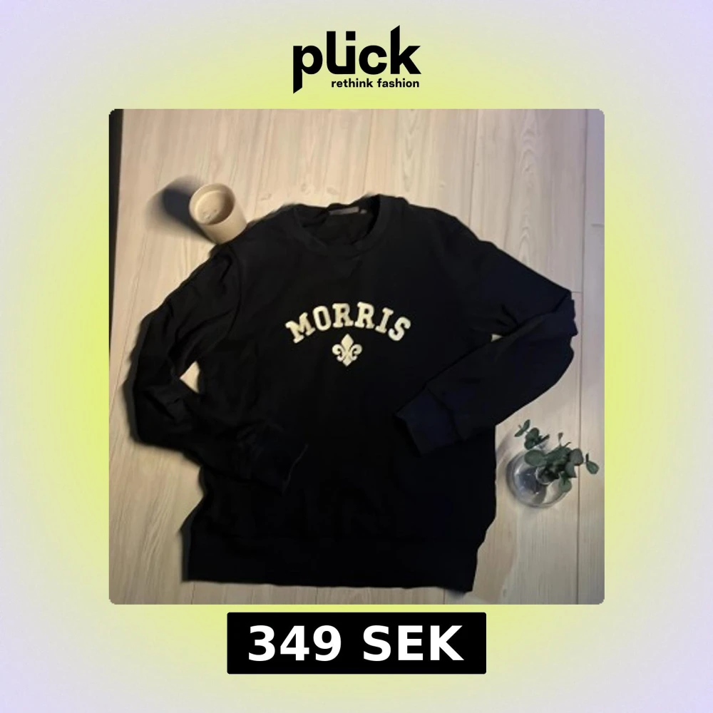Svart sweatshirt från Morris med broderad logga och text i vitt framtill. Klassisk rund halsringning och långa ärmar. Perfekt för en avslappnad och stilren look. Materialet känns mjukt och bekvämt, troligen bomull eller bomullsblandning.